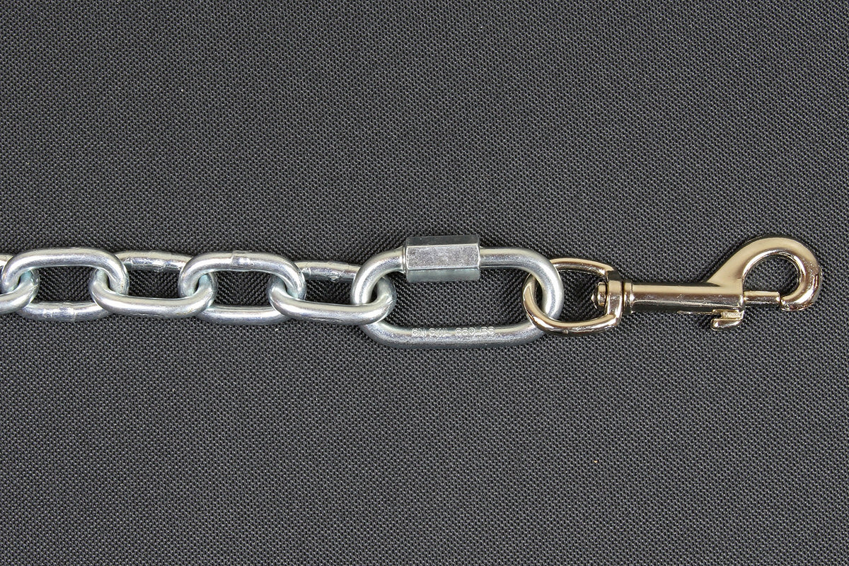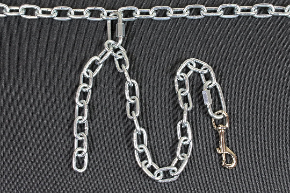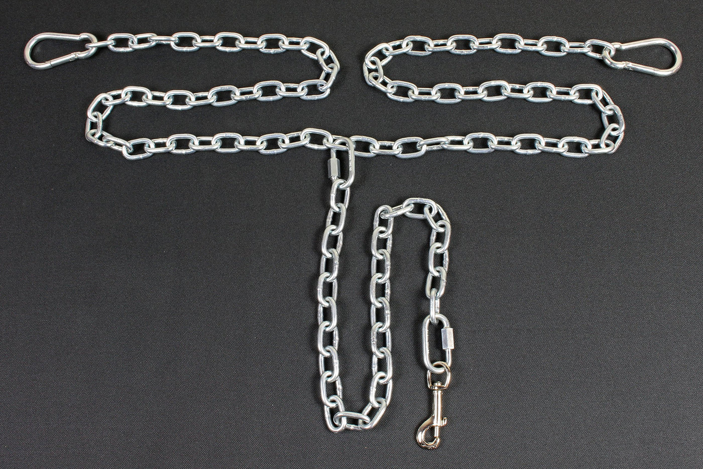 Q: What materials are used in the construction of the dog tether?A: The Bushwhacker Chew Proof Truck Bed Dog Tether is constructed with durable all-metal hardware, designed to withstand the rigors of travel and support even the largest dog breeds.