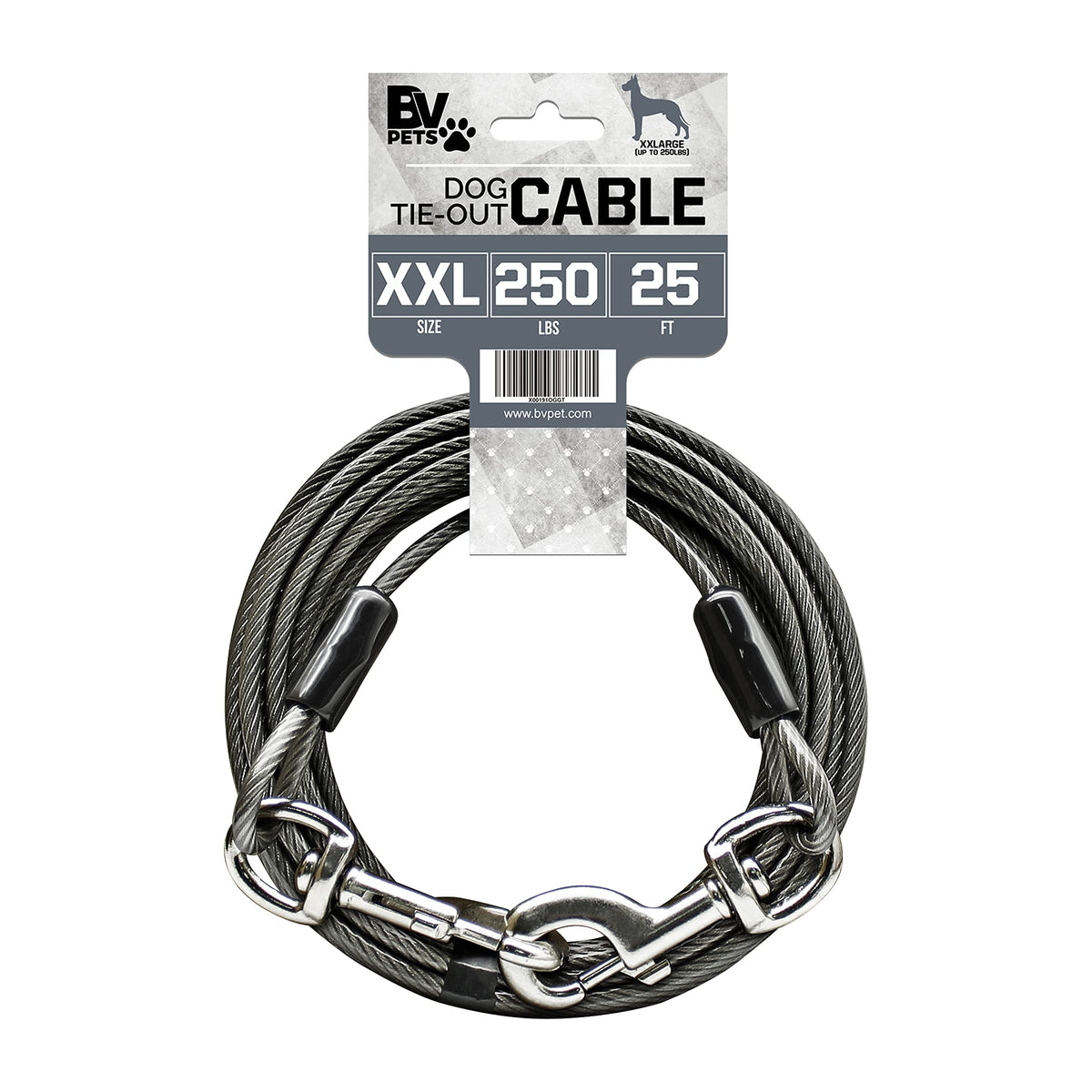 Bv Pet Super Heavy Xxl Tie Out Cable For Dogs Up To 250 Pound, 25 Feet