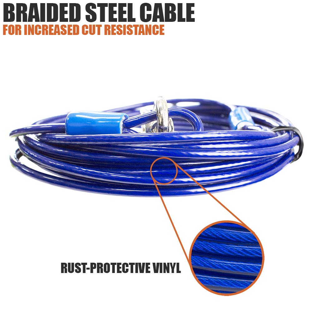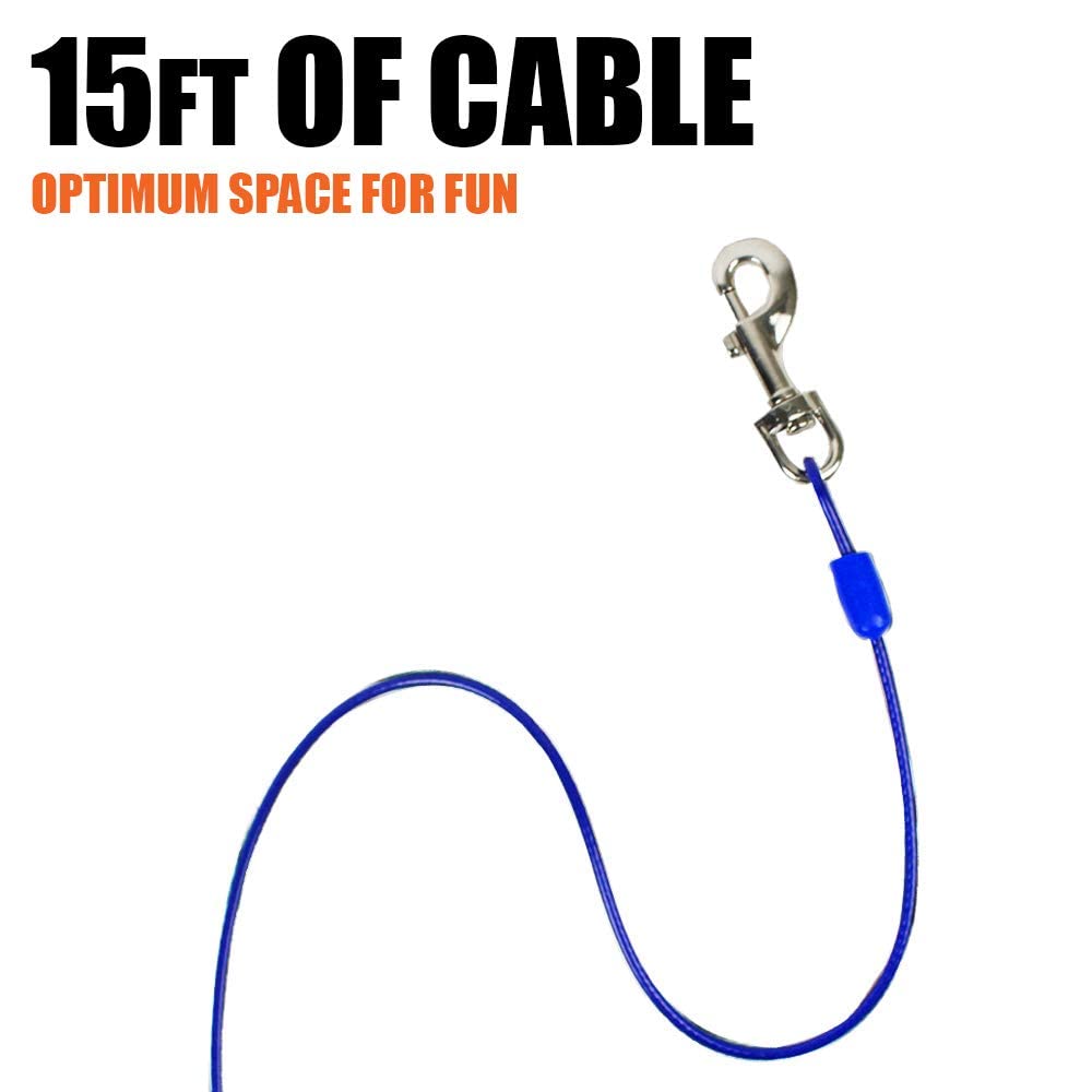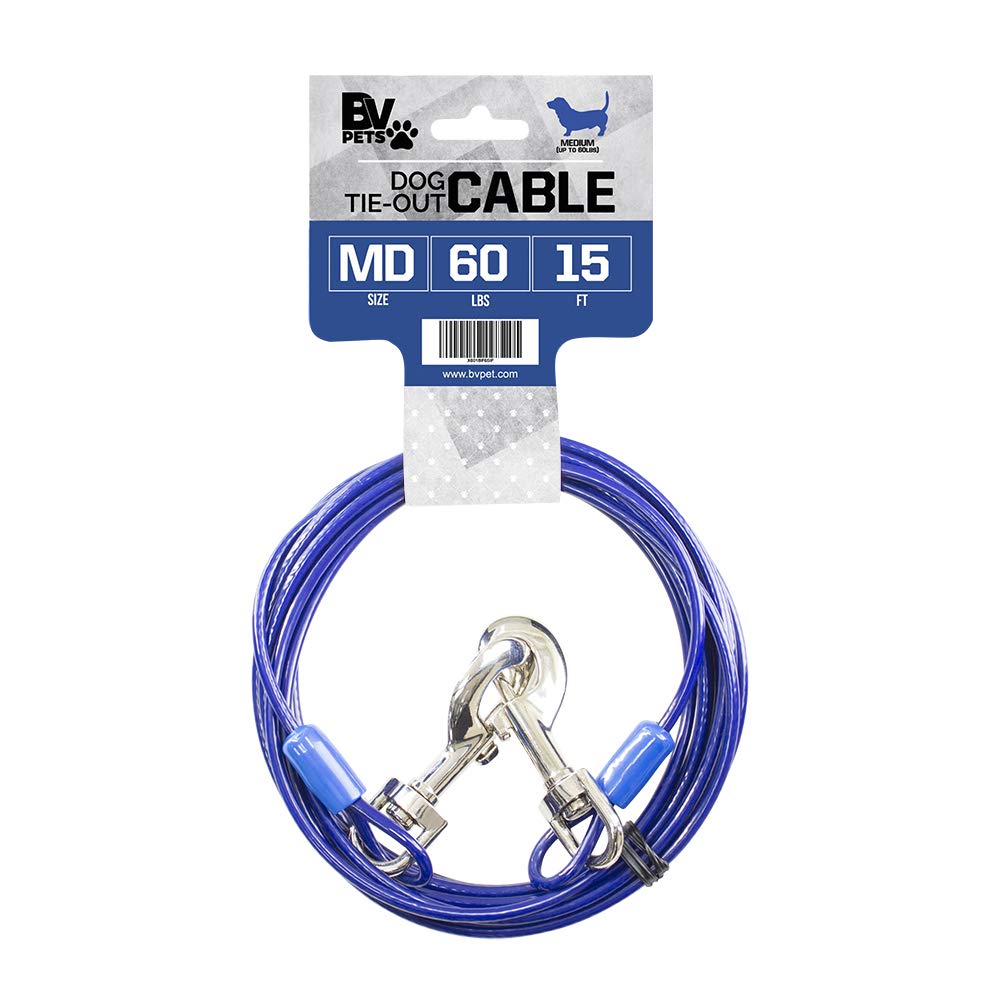 Bv Pet Tie Out Cable For Dogs Up To 90/125/ 250 Pounds, 25/30 Feet (60Lbs/ 15Ft/ Blue)
