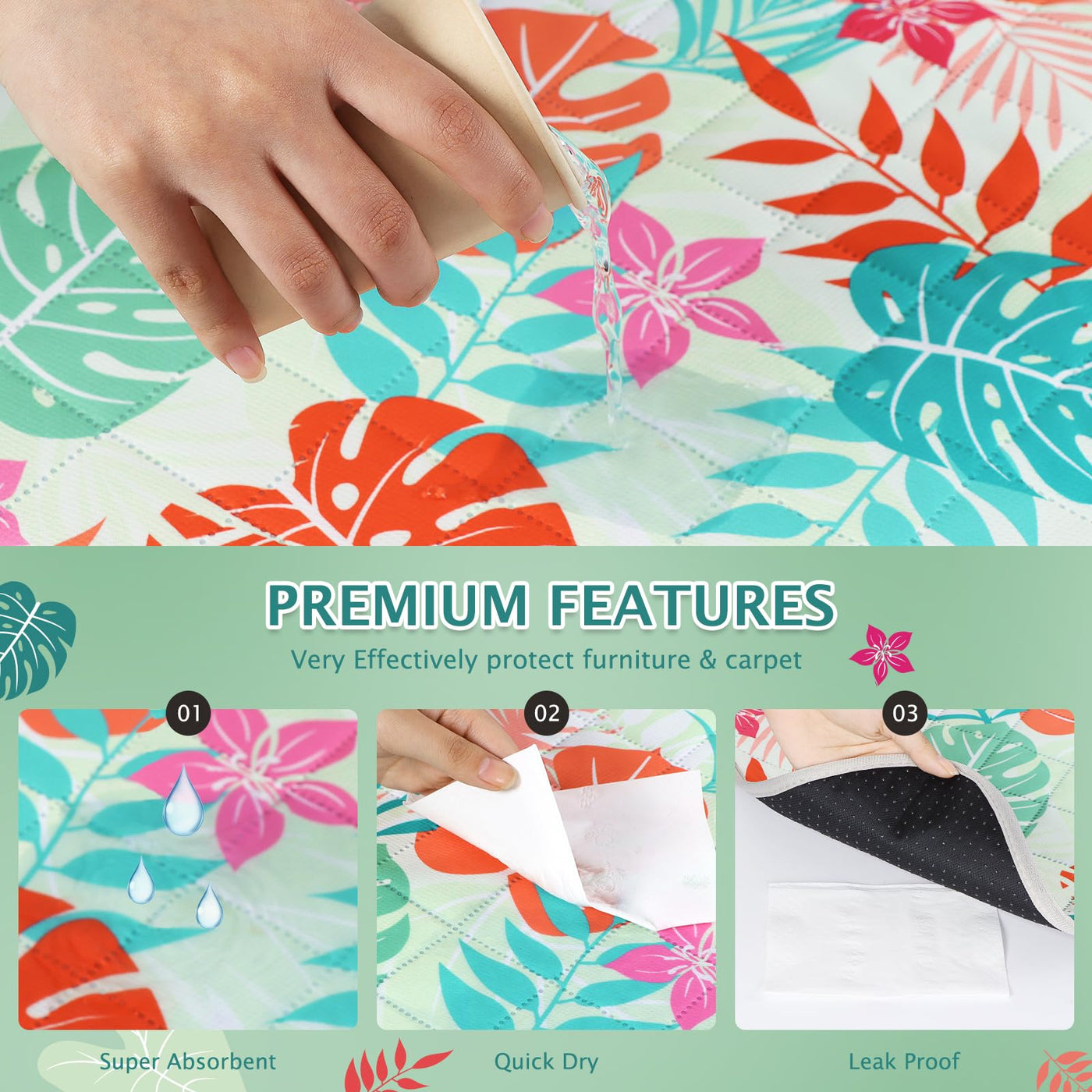 Our Washable Pee Pads For Dogs Are Made Up Of Four Layers Of Material, With Excellent Water Absorption And Leak Proof.The Non-Slip Bottom Design Of The Bottom Layer Allows The Reusable Dog Pee Pads To Stay On The Floor Or Carpet, Keeping Your Pet Safe.These Pet Training Pads Are Not Just For Training Puppies, But Also Ideal For Senior Dogs, Cats, And Other Pets As A Bed Or Crate Liner. They Are Highly Versatile And Practical.Our Whelping Pad Are Easy To Clean - Simply Toss Them In The Washing Machine And You'Re Done. You Can Receive 2Pcs Resuable Pee Pads. These Dog Pee Pads Washable Can Be Cleaned And Alternative Use, Which Would Be More Convenient.Reusable Pee Pads For Dogs With Cute Patterns Will Become A Fashionable Choice For Home Decoration. A Soft And Comfortable Touch On The Surface Gives Your Pet A Good User Experience.These Wee Wee Pads Can Hold Up To More Than 20-30 Times, Ensures Your Floor And Seat Dry All Night Dry.
