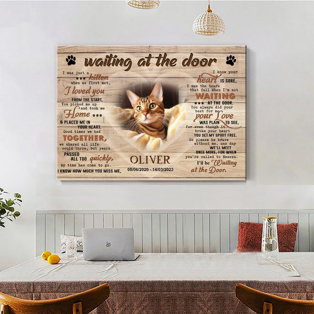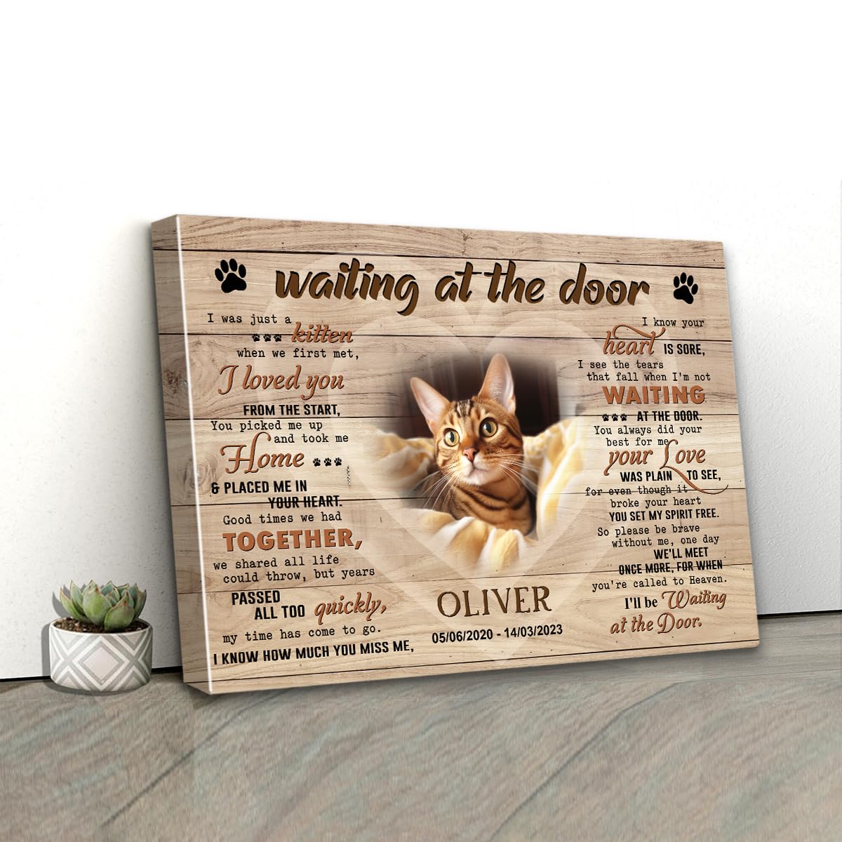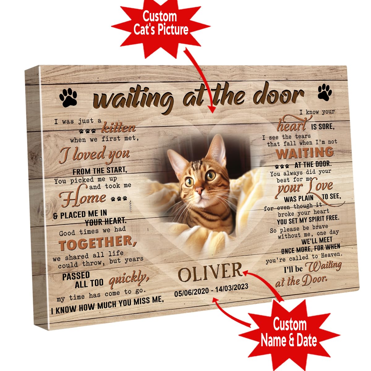 C80816 Personalized Cat Memorial Canvas Gifts, Waiting At The Door, Memorial Frames For Pictures, Gift For Cat Lover Mom Dad, Na