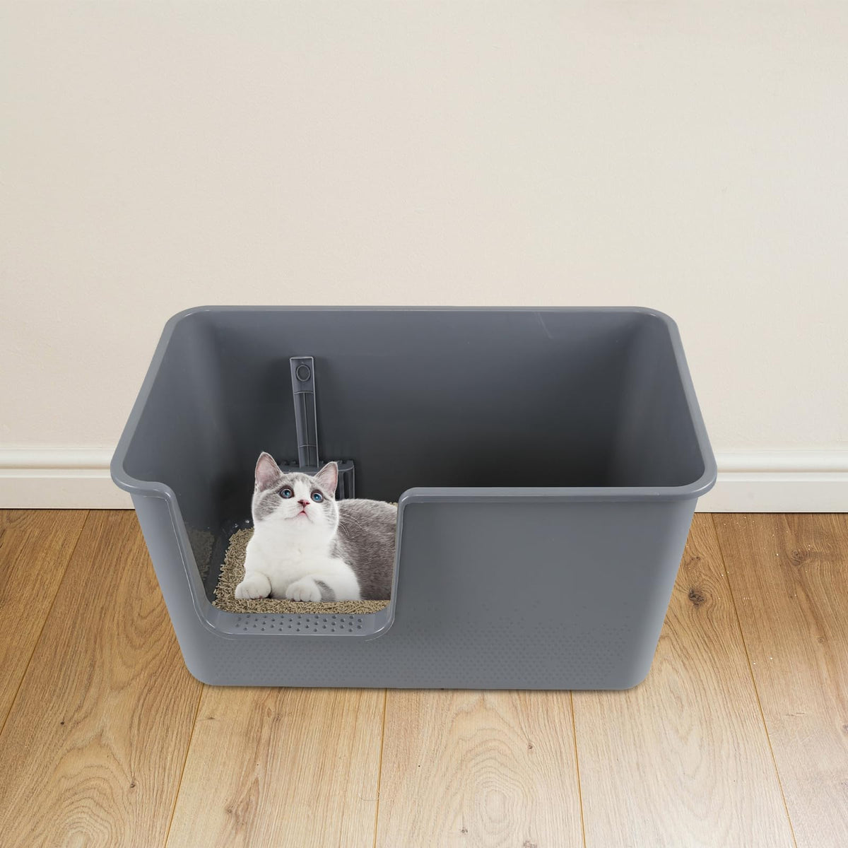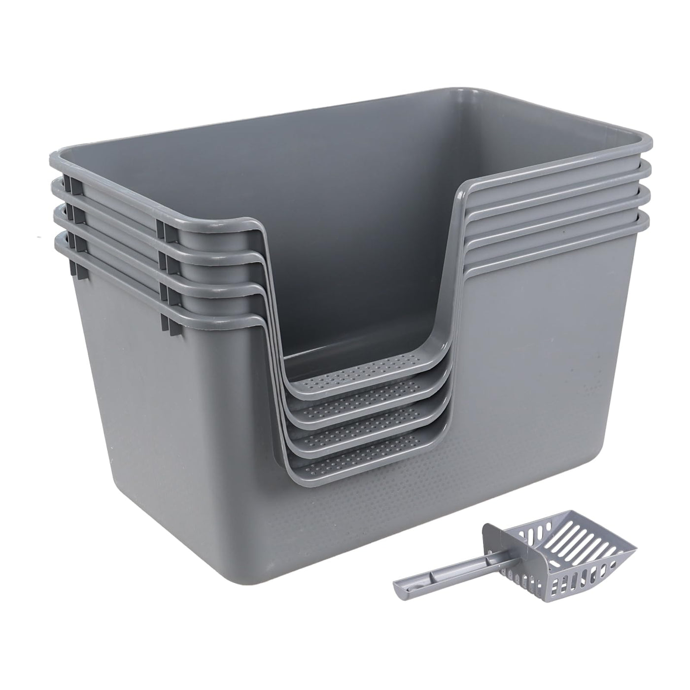 Callyne Set Of 4 Large Open Top Cat Litter Box, Anti-Splashing High Side Cat Litter Tray With Litter Scoop, 24.33'' X 15.16'' X