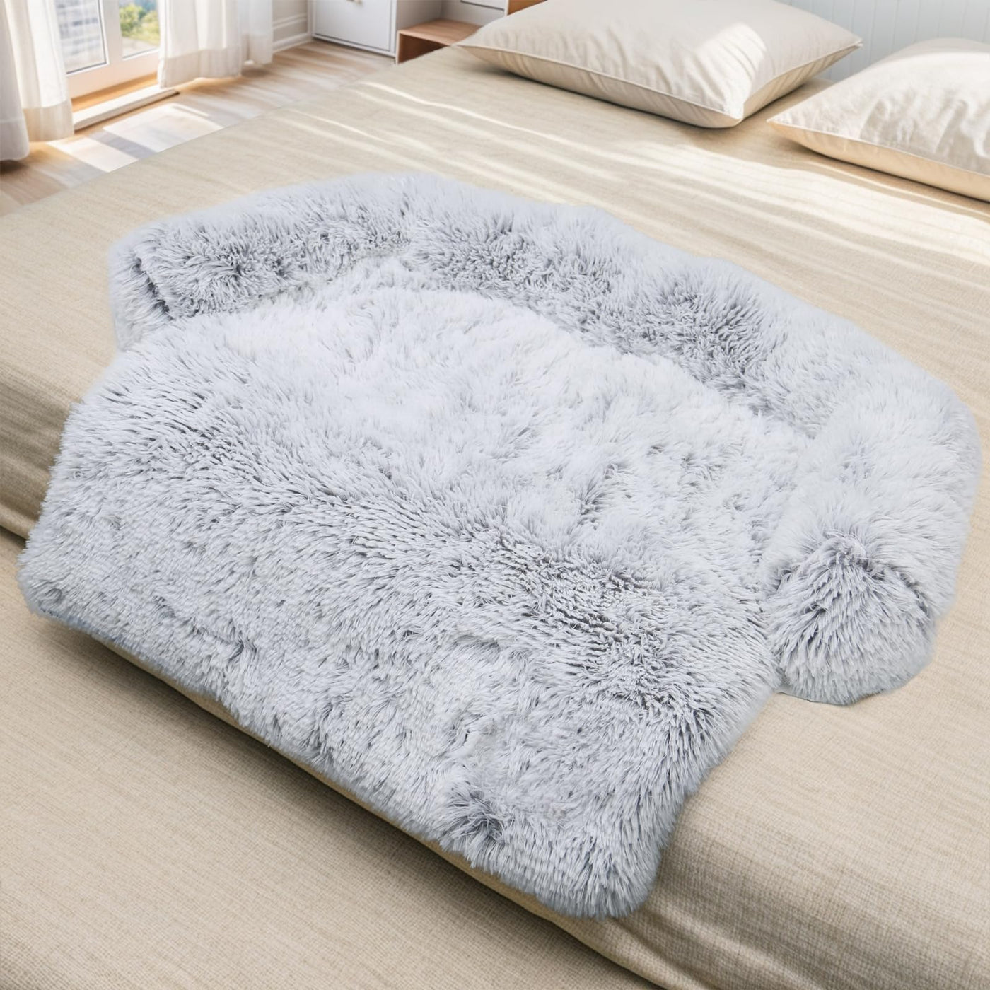 Calming Dog Bed Fluffy Plush Dog Mat For Furniture Protector With Removable Washable Cover For Large Medium Small Dogs And Cats (Large, Light Grey)