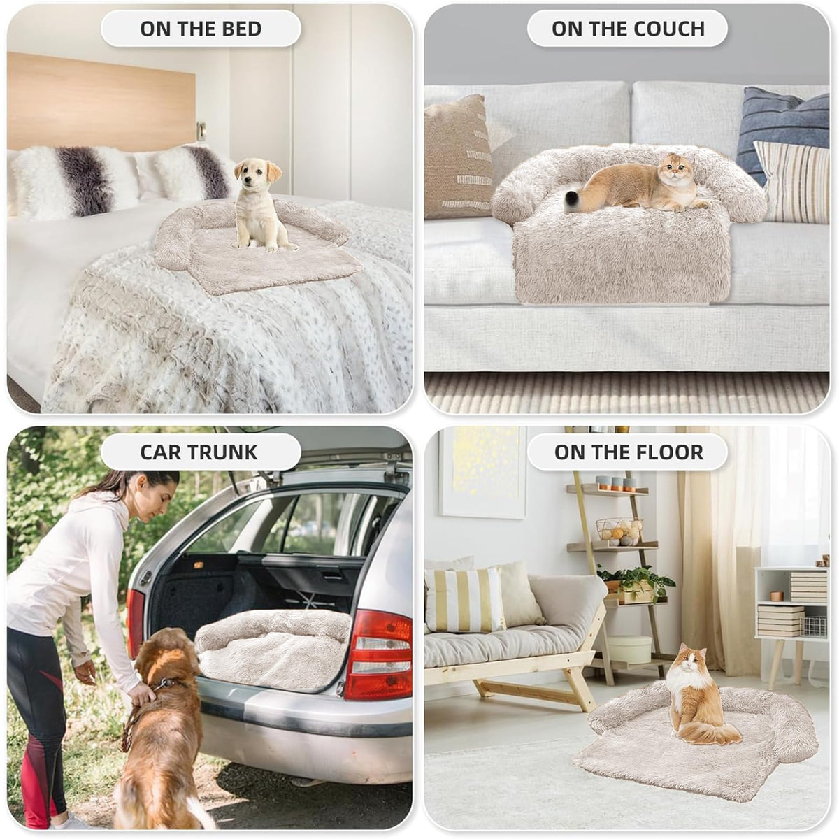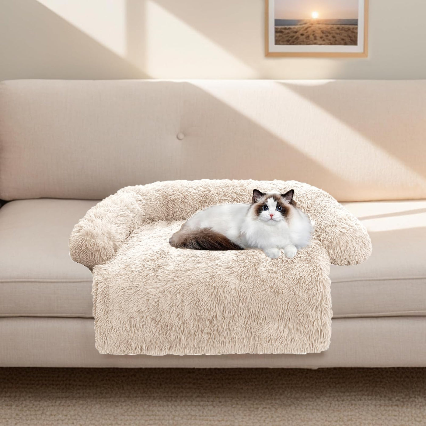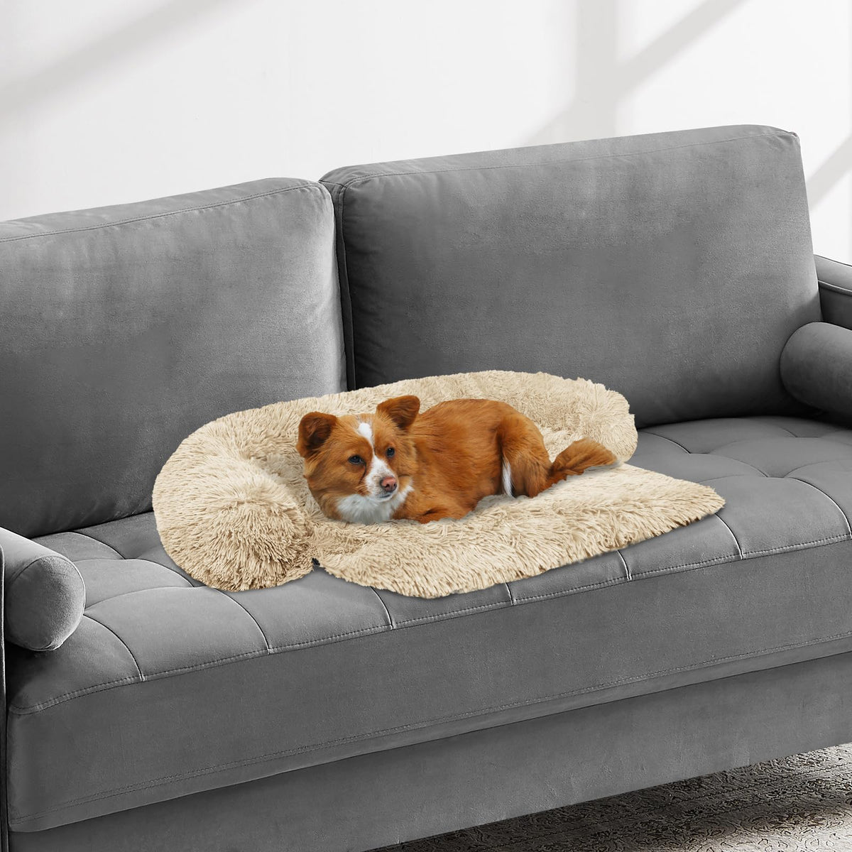 Calming Dog Bed Fluffy Plush Dog Mat For Furniture Protector With Removable Washable Cover For Large Medium Small Dogs And Cats (Xs (31'X23.5'X5'), Beige)