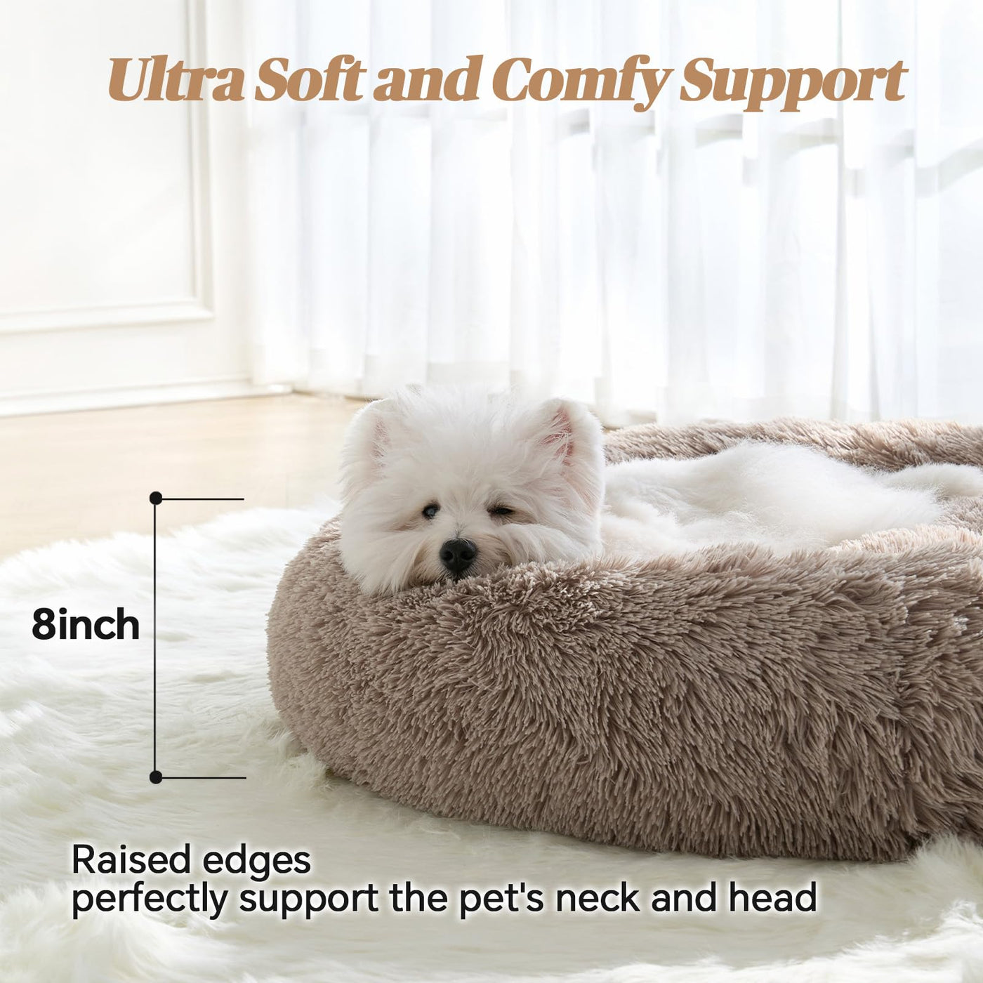 Calming Small Dog Bed,Donut Fluffy Anti-Anxiety Round Washable Cute Bed, Plush Cozy Cuddler Warming Soft Comfort Pet Bed For Sma