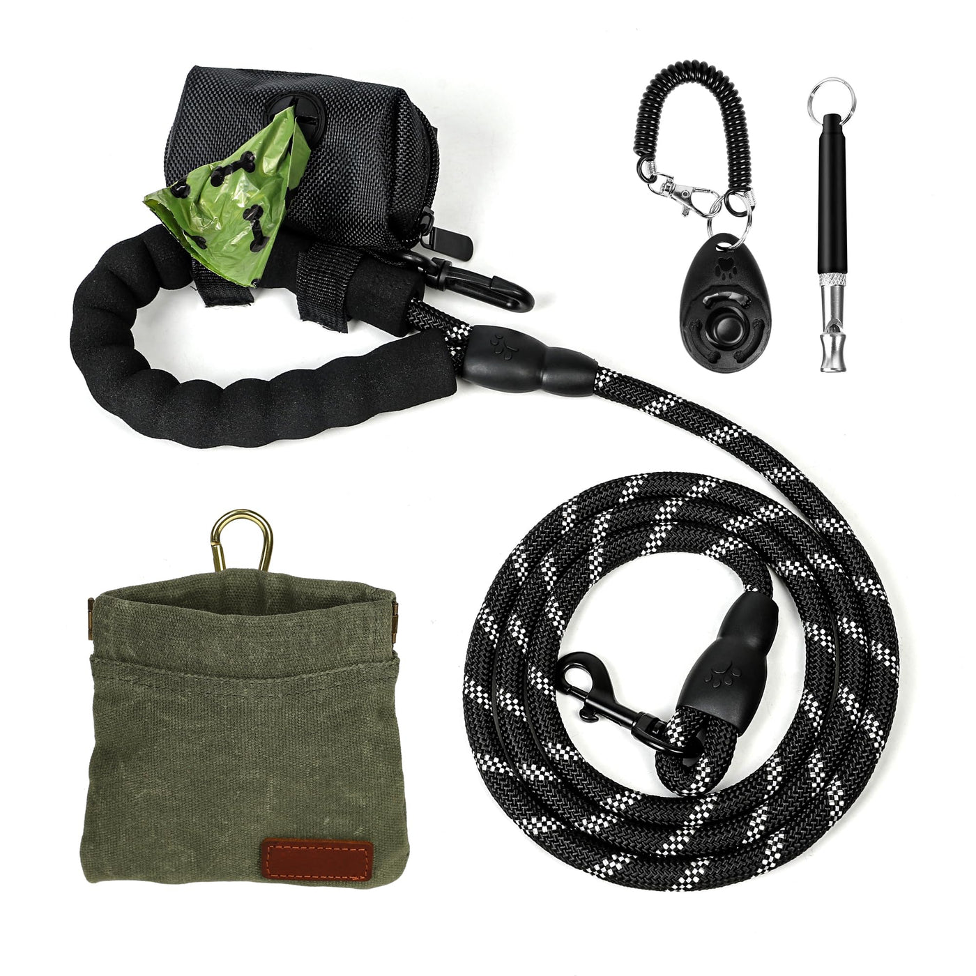 cambk Dog Treat Pouch Training Kit, Small Puppy Treat Bag with Clip, Dog Clicker and Whistle for Pet Training, 5ft Leash with Pa