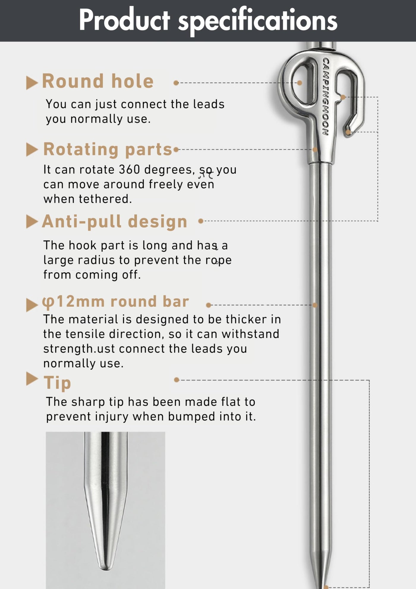 Campingmoon 11.8-Inch Dog Tie Out Stake Stainless Steel For Small Pets Outdoors K45-30