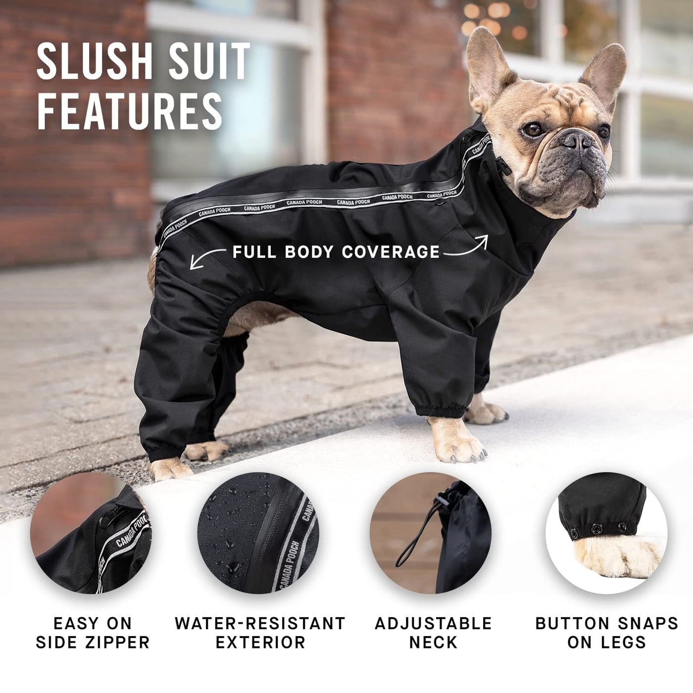 Canada Pooch Dog Slush Suit Dog Bodysuit For Rain And Snow Full Body Dog Suit Water-Resistant Dog Onesie (Black, 14 (13-15' Back Length))