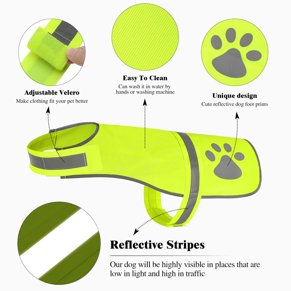 Features Of Candofly Reflective Dog Vest:?? ?Reflecting In The Dark And Obvious During The Day, Keep Dogs Be Seen & Be Safe. The Vest Will Provide Great Peace Of Mind When You Walk Your Dog In Dark. ?No Any Hassle To Use It. Just Need To Paste Up The Vest Strap To The Designated Spot According To The Length Of Your Dogs Back And Waistline. ?High-Quality Breathable Polyester Fabric, Very Soft & Comfortable For Dogs To Wear It, Suit For Different Size Dogs. Specification For Candofly Dog Vest?? ?Two Colors Can Be Chosen: Orange, Neon Green. ?Five Available Sizes: Small: Back Length:13.8''/35Cm, Chest Girth:17.7''-19.7''(45Cm-50Cm)Medium: Back Length:15.75''/40Cm, Chest Girth:21.65''-23.62''(55Cm-60Cm) Large: Back Length:19.7''/50Cm, Chest Girth:28''-30''(71Cm-76Cm)X-Large: Back Length:24''/61Cm, Chest Girth:33.86''-36.2''(86Cm-92Cm) Xx-Large: Back Length:30.7''/78Cm, Chest Girth: 37.8''-40''(96Cm-102Cm)?Material: Polyester. Package Including: 1X Dog Vest Question And Answer?? 1. Can I Clean The Vest In The Washer? - Yes, Of Course. But Cant Wash It With Bleach. If Washing In A Machine, Put It In A Garment Bag & In The Gentle & Delicate Cycle, So The Fastener Doesnt Stick To Other Items. The Vest Will Be As Bright As The New. 2. Why Dont We Provide A Size Chart That Directs To Different Weights? -Because It Depends On Your Dogs Body Type And Ages. If Your Dogs Are Very Broad And The Belly And Chest Like A Bull Dog Or Pit Bull You Would Probably Go With The Large. If Your Dogs Are Leaner Like A Lab Try The Medium. If Your Dogs Are Small Type Like Poodle Or Chihuahua, You Can Go With Small. If Your Dogs Have A Very Long Back Such As A German Shepherd Then Try Large Because You Will Have More Coverage. All Of These Are Just Suggestions. The Decision Are Made On Case By Case .
