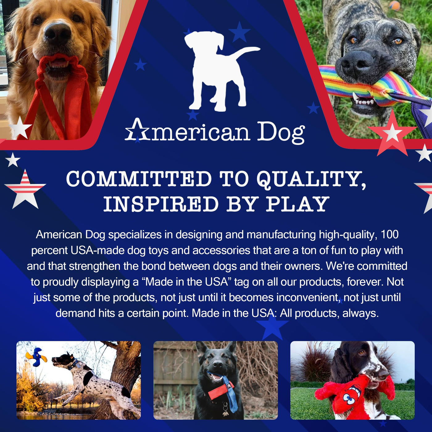 668-751778167098 Candy Cane Dog Toy manufactured by American Dog. What can make a tail wag? Can give your dog something to do? What can float in water and can squeak too? The Candy Cane can! The Candy Cane can! Made from 1000D Cordura and super soft fleece backing part of our hybrid line Squeaks Floats!