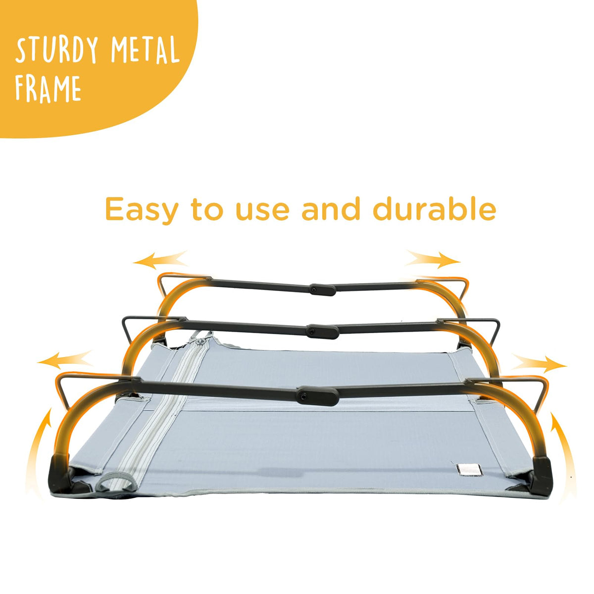 Give Your Furry Friend The Ultimate In Portable Comfort With The Canine Canyon Daisy Dog Cot. This Compact And Foldable Pet Bed Is Perfect For Traveling, Camping, Or Backyard Lounging. Folding Down To Just 22' X 8' And Zipping Together In Seconds, Its The Ideal Solution For On-The-Go Pet Parents. The Elevated Design Offers A Supportive, Stretchy Fabric Surface With A High Weight Capacity Of Up To 160 Pounds, Ensuring Stability And Comfort For Dogs Of All Sizes. With Its Chew-Proof, Water-Resistant Material, Cleaning Is A Breeze-Just Rinse With Water To Remove Dirt And Stains. Plus, The Sturdy Construction Includes Six Extra Triangle Supports To Evenly Distribute Your Pups Weight And Reduce Sliding. Say Goodbye To Complex Setups; The No-Assembly Design Means You Can Focus More On Adventures And Less On Instructions. Whether At Home Or On The Road, The Canine Canyon Daisy Dog Cot Is The Reliable, Comfortable Resting Spot Your Pet Deserves. For Patents, See Innovations At Westfield Outdoors.