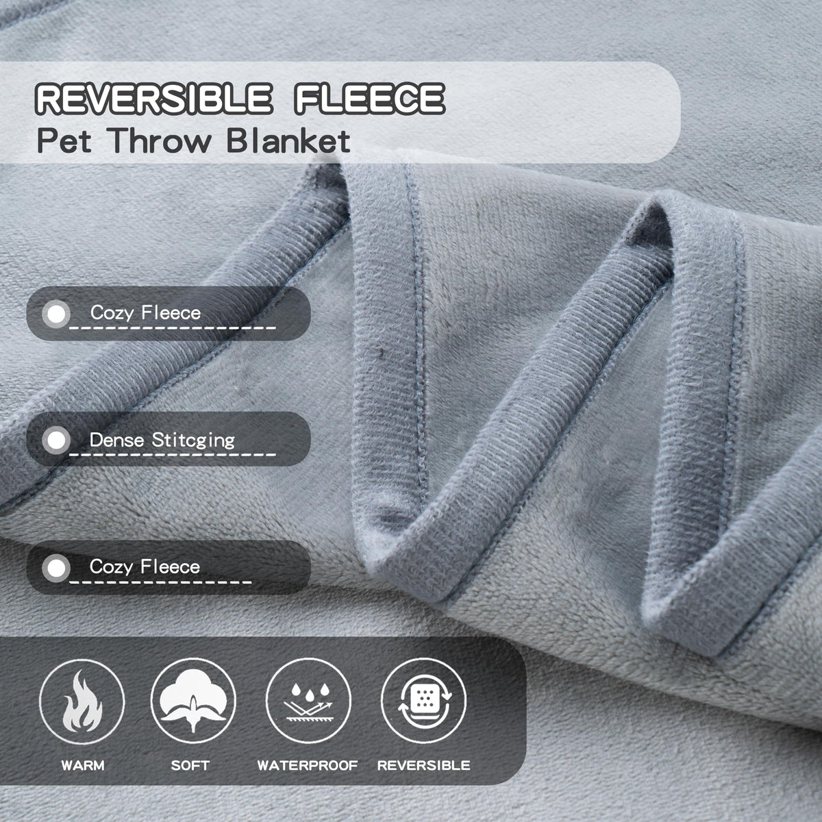 Capt.Snooze 50X60 Inch Light Gray Pet Blanket For Medium/Large Dogs - Reversible Soft Fluffy Waterproof Flannel Dog Bed Blanket,