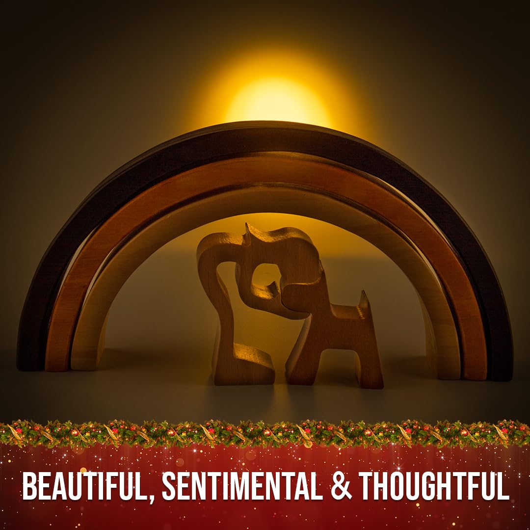 Q: What materials are used in the Capti Rainbow Bridge Dog Memorial Gifts?A: The Capti Rainbow Bridge Dog Memorial Gifts are handcrafted from 100% wood, ensuring that each piece is unique in color, cut, and size. This makes for a sturdy and beautiful memorial keepsake.