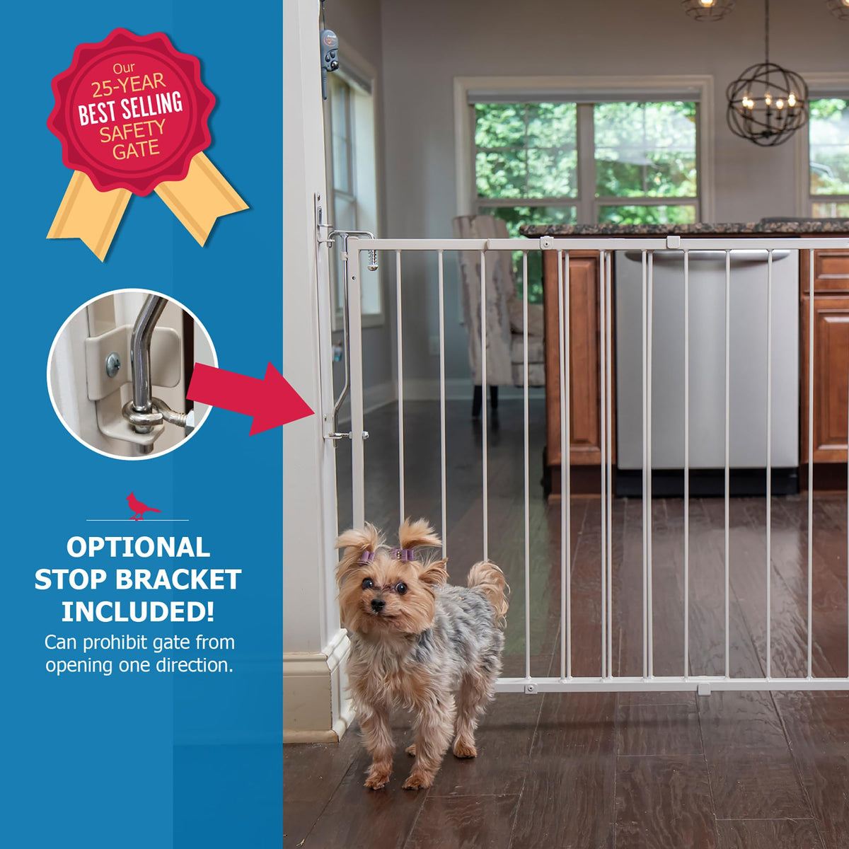 SAFE & SECURE - Our baby gate has a latch system that offers one-hand operation for adults and still prevents toddlers from opening the gate. It can open in both directions. The child safety gate is Juvenile Product Manufacturers Association (JPMA) certified. | EASY TO INSTALL - Choose a wall-mounted dog gate for peace of mind and the Duragate Safety Gate for the highest strength of installation. Our pet gate offers hassle-free installation. The pet and baby barrier can be mounted at any angle. | ADJUSTABLE SAFETY GATE - The gate is adjustable and fits openings 26.5 - 41.5 inches wide. The height is 29.5 inches and the bar spacing is 2.25 inches. For wider openings purchase a 12.5 inch extension (model BX12). | VERSATILE DESIGN - Ideal for child and pet safety, supervision, and accident prevention. Its the perfect gate to secure stairs, doorways, hallways, bathrooms, kitchens, and more. It features an all-steel construction with a powder-coated finish. | US BASED COMPANY - Cardinal Gates has been in business since 1993 and our operations are based outside of Atlanta GA. We are a small business that prides itself on the quality of both its products and its customer service. You can trust us with all your safety needs.