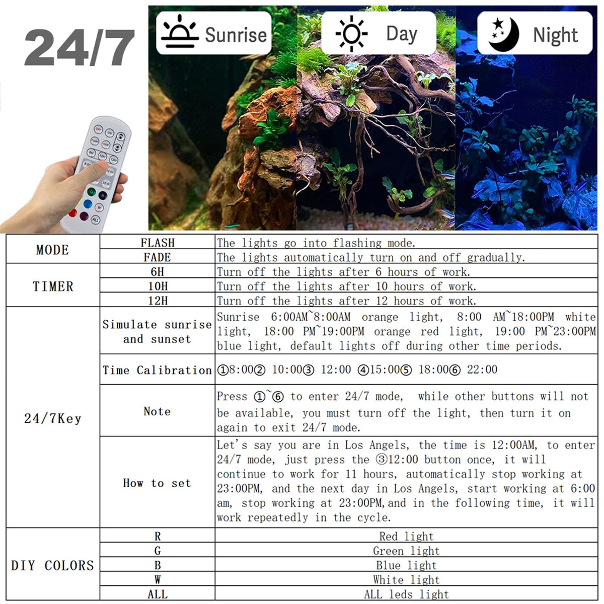 Carefree Fish Aquarium 24/7 Mode Timer Submersible LED Light Full Spectrum CRI 82 Tank Underwater Light & Nanometer Materials Ai