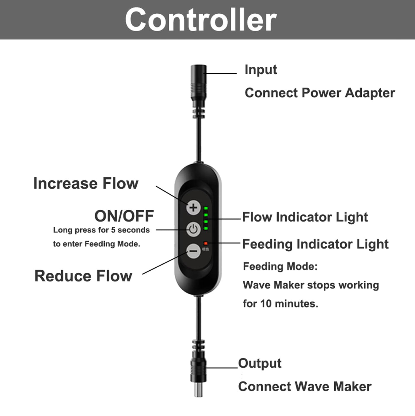 Carefree Fish Aquarium DC12V 10W Wave Maker 4 Level Adjustable Flow Rate Powerhead 1500Gph Wave Pump for 10~60Gal Freshwater and