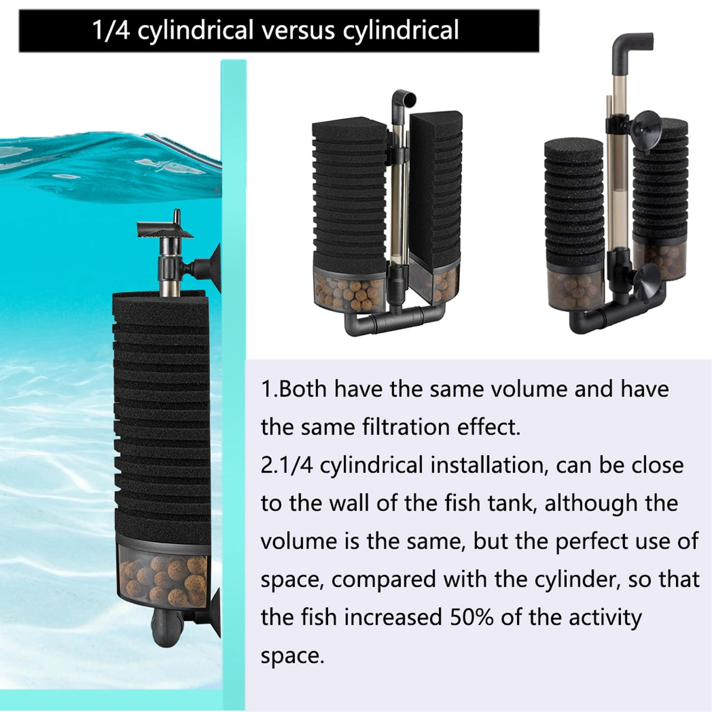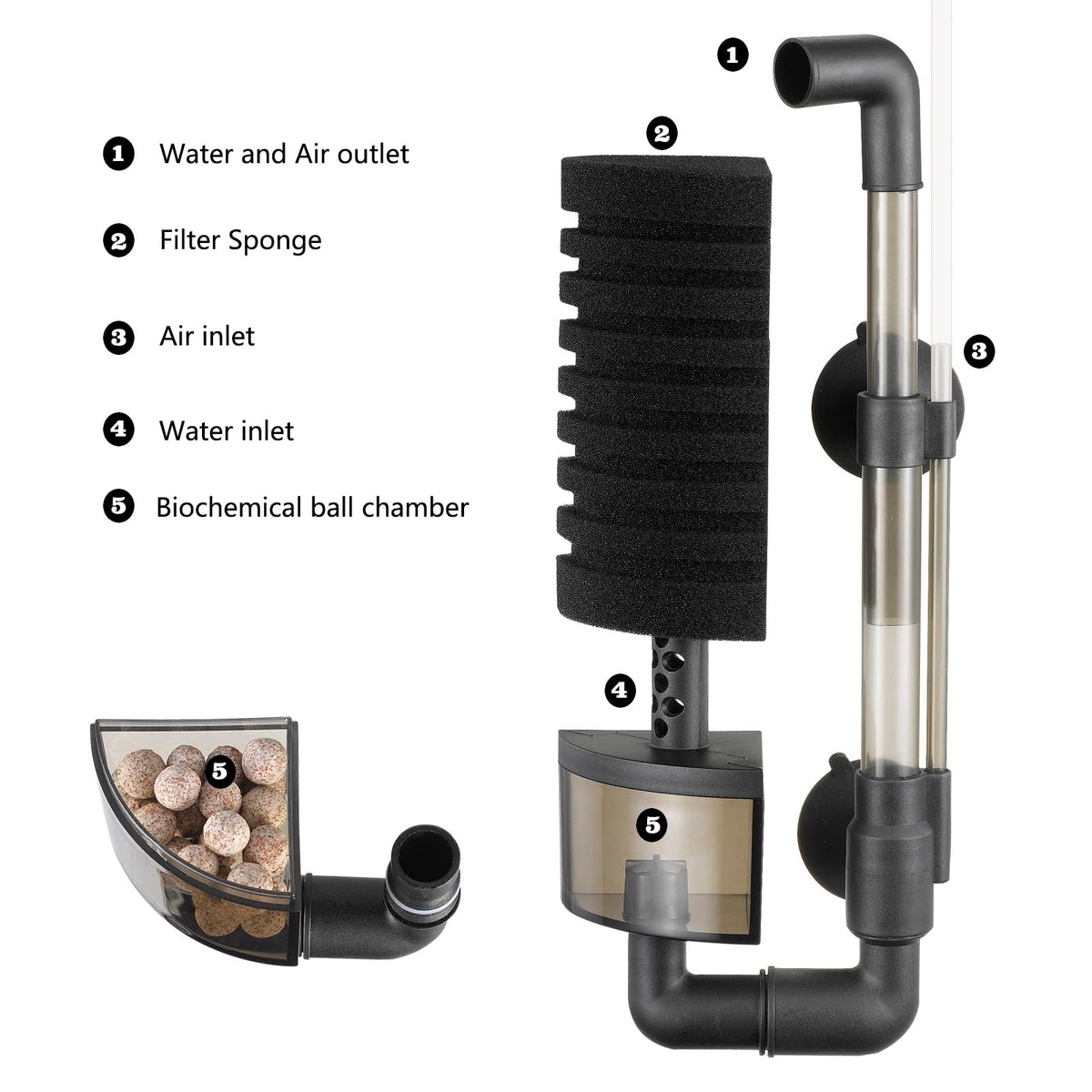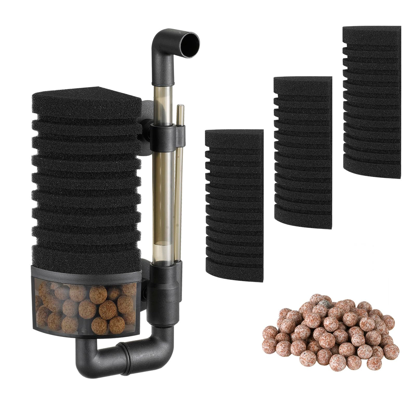 Carefree Fish Aquarium Filter Sponge Fish Tank Quiet Bubble Filter with 3 Sponges and 1 Bag of Filtered Ceramic Balls for Salt W