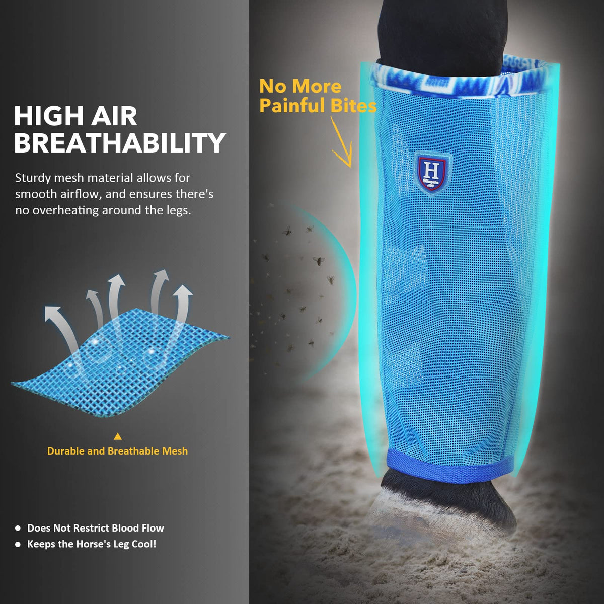 Caremaster Fine Mesh Fly Boots Loose Fitting & Non-Slip Horse Fly Leggings Fleece Air Flow (Set Of 4) Cool Blue Large