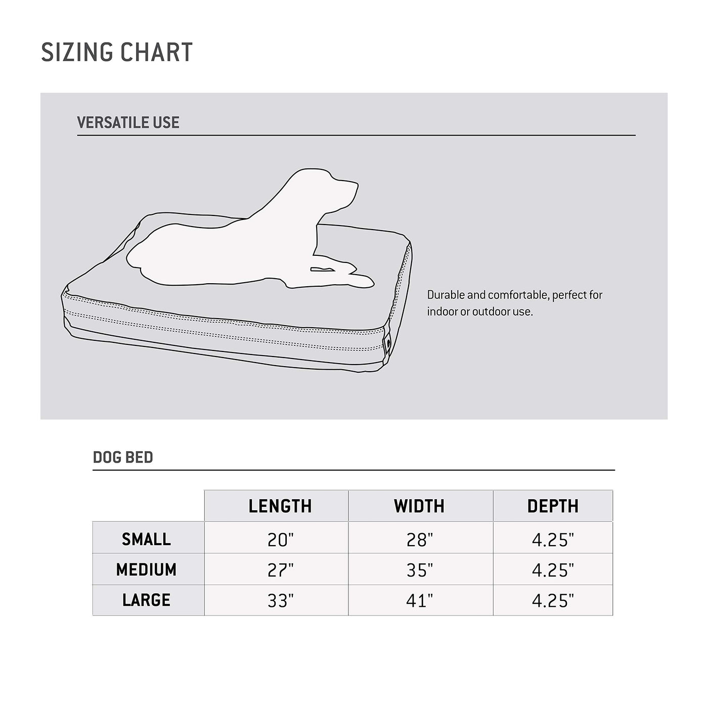 Q: What sizes does the Carhartt Firm Duck Dog Bed come in?A: The dog bed is available in three sizes: Small (20"W x 28"L x 4.25"D), Medium (27"W x 35"L x 4.25"D), and Large (33"W x 41"L x 4.25"D), allowing you to choose the right fit for your dog.