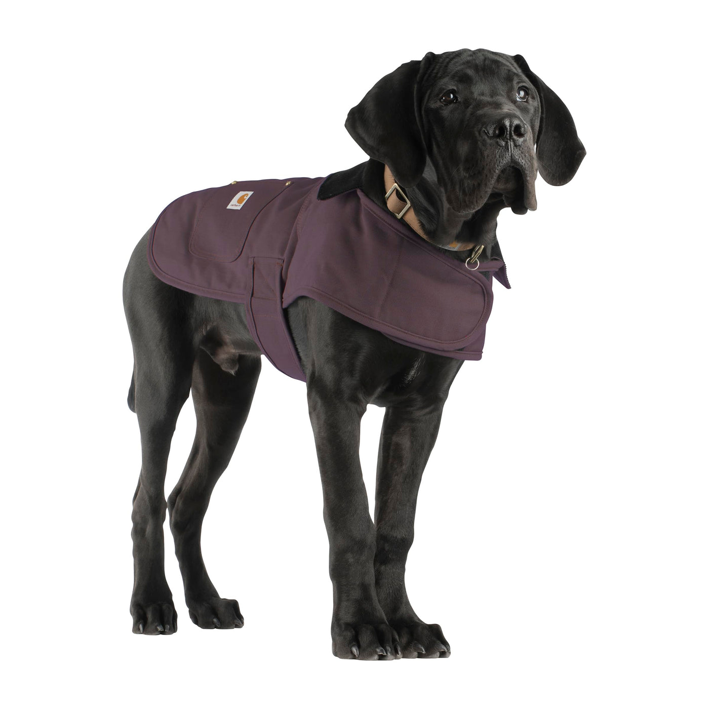 The Carhartt Firm Duck Insulated Dog Chore Coat is built for the toughest pups. Made with durable firm-hand duck canvas, this waterproof dog coat provides exceptional protection in wet, windy, and cold conditions. The water-repellent exterior shields your dog from the elements, while the dog jacket's quilted liner and corduroy collar ensure warmth and comfort during outdoor adventures. The new vent in the collar offers easy access and extra breathability. Designed for ease of use, improved neck and chest tabs allow for quick on and off, and the loop-lined straps provide a fully adjustable fit for maximum comfort. This durable weather-resistant coat is perfect for active dogs who need reliable protection from the cold, rain, and wind. Whether you're walking in the snow or braving a rainy day, the Carhartt Firm Duck Insulated Dog Chore Coat ensures your dog stays dry, warm, and stylish. Available in sizes from small to large, it’s the ideal winter coat for your pup.