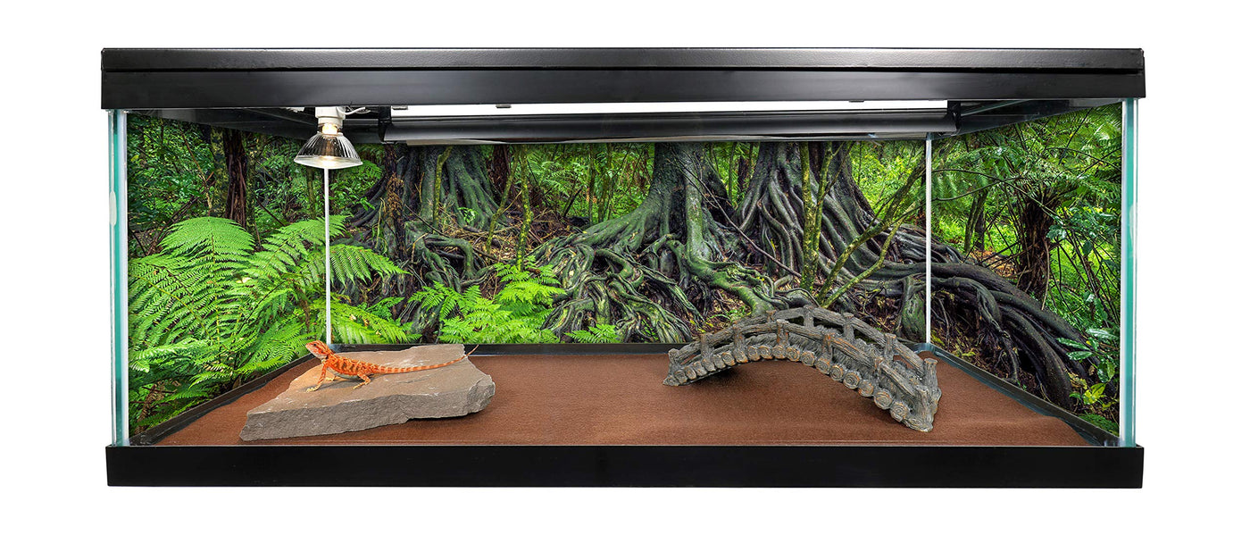 This Rain Forest Scenic Background Is Sized To Wraparound 3 Sides Of A 20L Or Our 20L Medium-Plus 30Lx12Dx12H Model Glass Terrarium. It Measures 10.1875 (H) X 54.375 (L). The Background Is Printed On Moisture-Resistant, Uv-Resistant, Pvc Material. Just Use Clear Adhesive Tape To Attach To The Outside Of Your Terrarium; Both Sides And Back. Carolina Custom Cages Is A Division Of Carolina Designer Dragons, Inc.