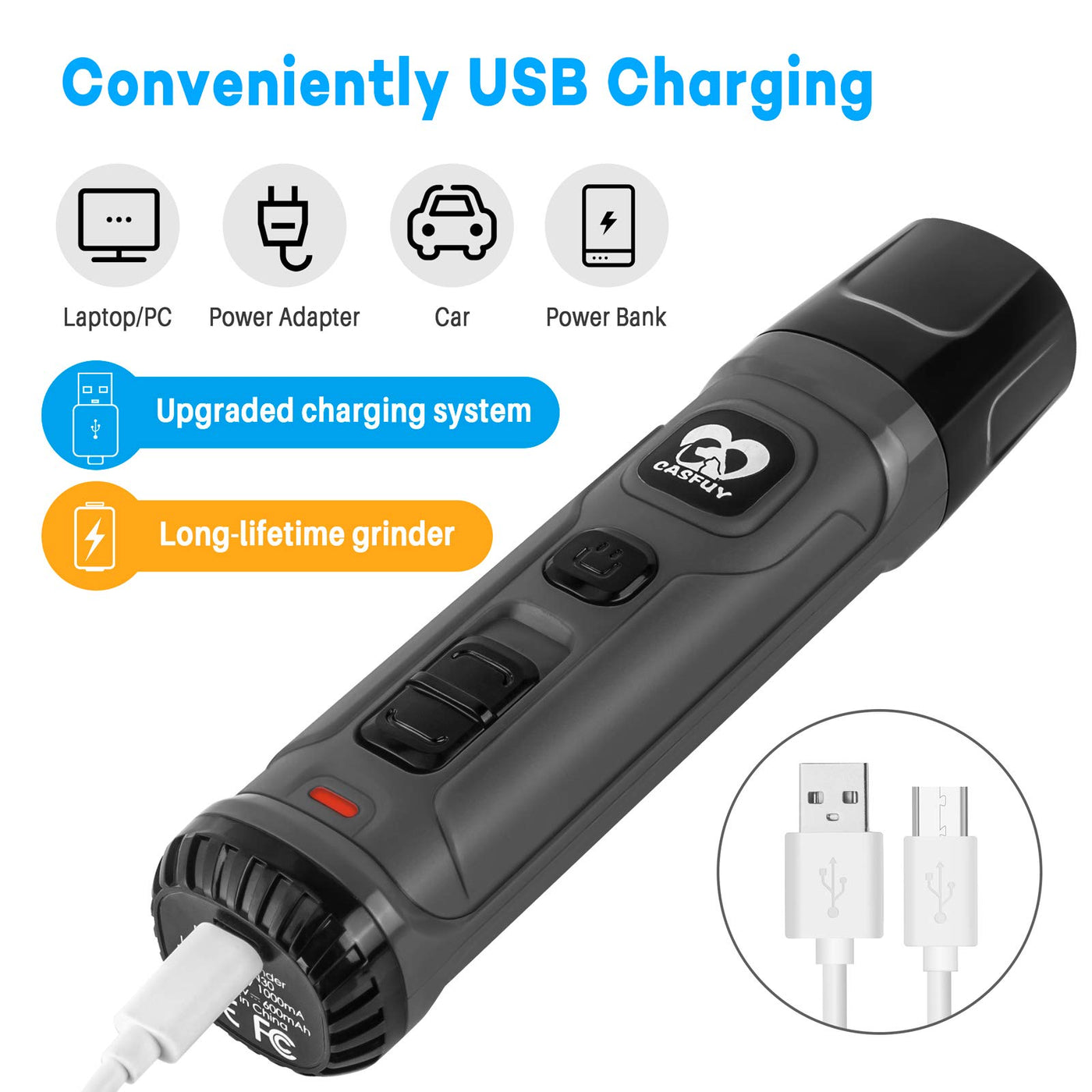 Q: How do I charge the Casfuy Dog Nail Grinder, and how long does the battery last?A: The Casfuy Dog Nail Grinder is rechargeable and comes with a USB cable for charging. After a 3-hour charge, it can last up to 2 hours of continuous use, allowing you to groom your pet without interruption.