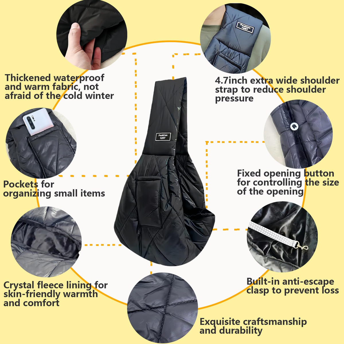 Introducing The Ultimate Pet Sling Carrier For Your Furry Friend! This Stylish And Functional Small Dog Carrier Bag Is Designed To Ensure Your Beloved Pet'S Safety And Comfort While On The Go. This Puppy Sling Carrier For Small Dogs 0-15 Lbs.Crafted From Premium Materials With A Plush,Cozy Interior,This Dog Carrying Sling Provides A Comfortably Warm And Safe Space For Your Pet; The Sleek Black Exterior Adds A Touch Of Sophistication And Is A Stylish Accessory For When You'Re On The Go. It Is Also Windproof And Cold-Proof. The Cat Sling Is Ergonomically Designed With A Cuddly Three-Dimensional Wrap To Ease Anxiety About Your Pet Being Out And About, Making It Easy To Take Your Pet With You To Ensure Their Safety So You Can Enjoy Your Adventures Together. The Sling Is Designed To Fit Snugly Around The Body, And The Extra Wide 4.7-Inch Straps Allow For An Even Force On The Shoulders, Effectively Reducing The Burden On Your Back And Shoulders. Whether You'Re Out Running Errands, Taking A Walk Or Traveling, This Dog Purse Offers The Perfect Blend Of Convenience And Style. Keep Your Furry Companion Close To You And Make Unforgettable Memories With This Must-Have Accessory.