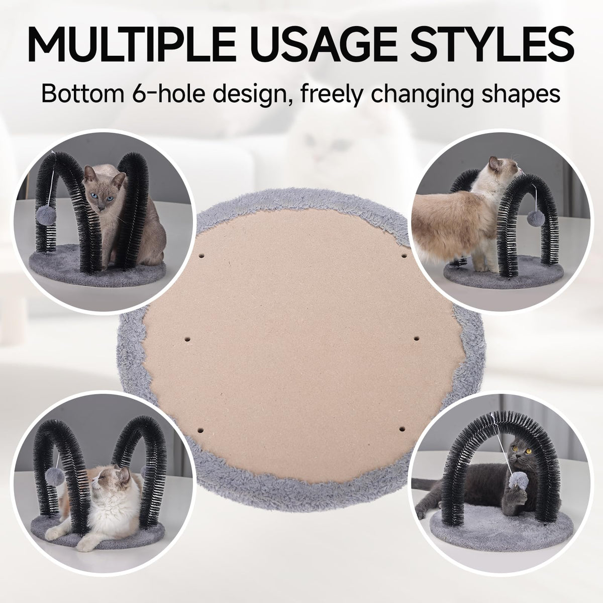 Cat Arch Self Groomer Cat Massager, Cat Grooming Brush With 2 Brushes And Heavy Plush Base, Cat Face And Back Scratchers, Cat Sc