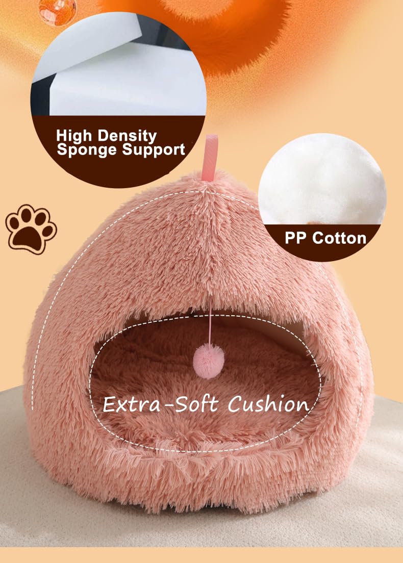 Cat Bed Cave, Cat Houses For Indoor Cats, Cute Cat Bed, Soft Plush Fur Kitten Bed, Fluffy Pet Cave Non-Slip, Anti Anxiety For Sm