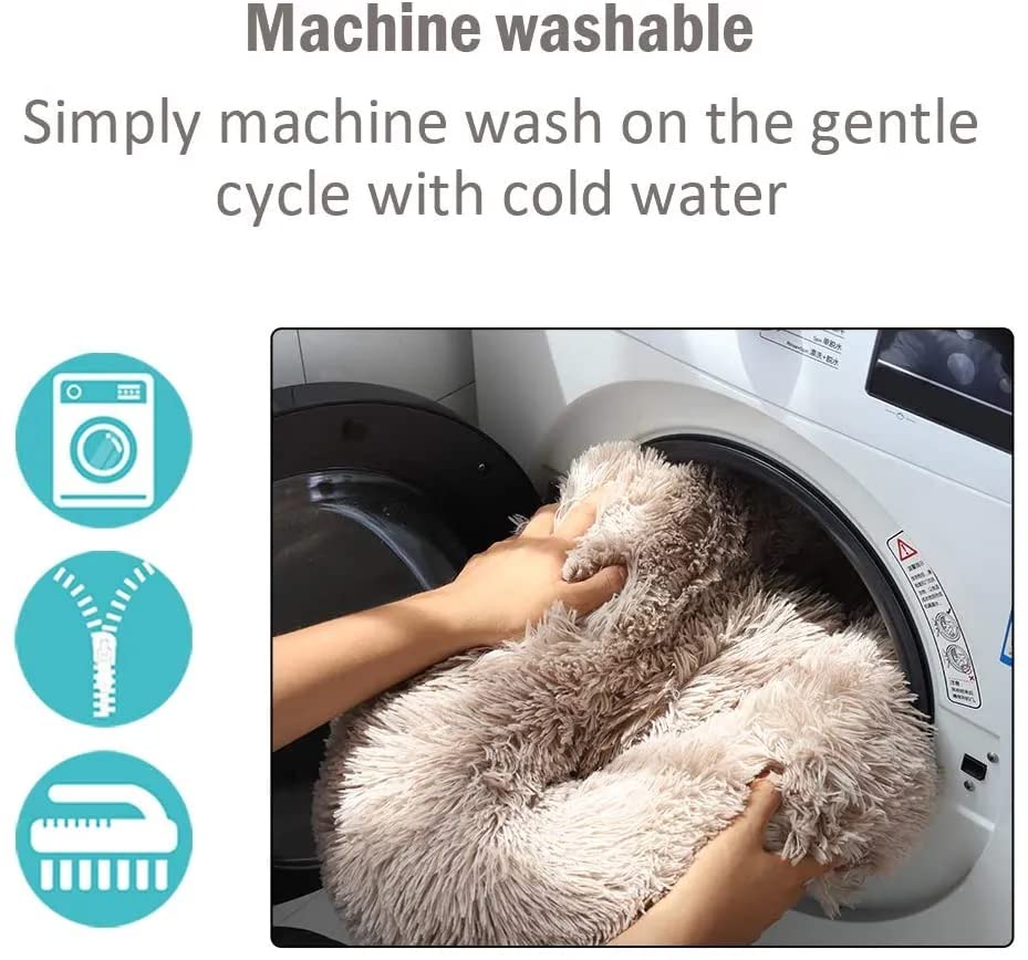 Cat Bed For Indoor Cats And Small Medium Dogs - Washable 20/24 Inches, Round Fluffy Plush Faux Fur, Anti-Anxiety, Thick Bottom (