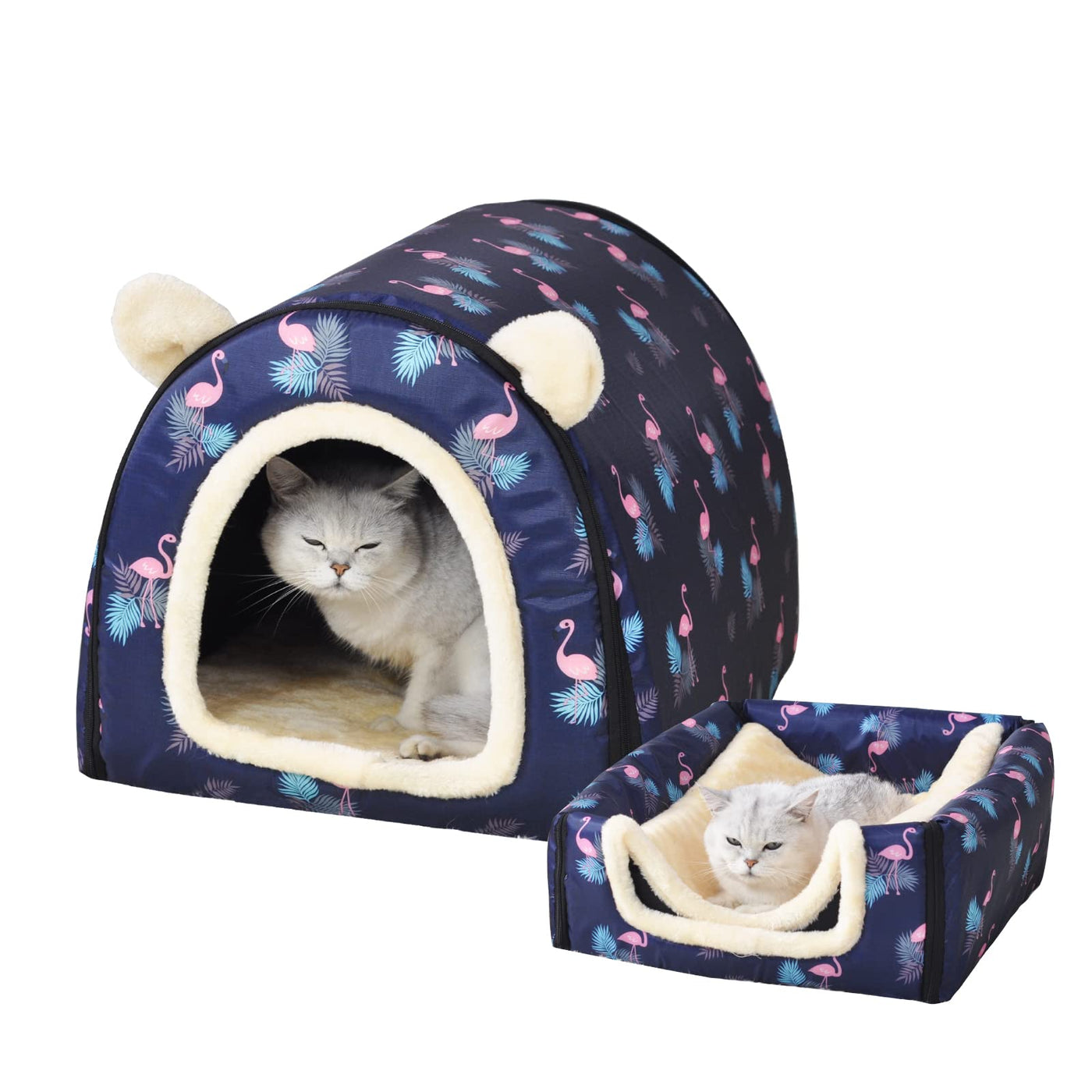 Cat Bed Or Dog Bed,2 Ways To Use,Indoor Pet House With Fluffy Mat,Removable And Washable Cover,Splash-Proof House And Non-Slip B