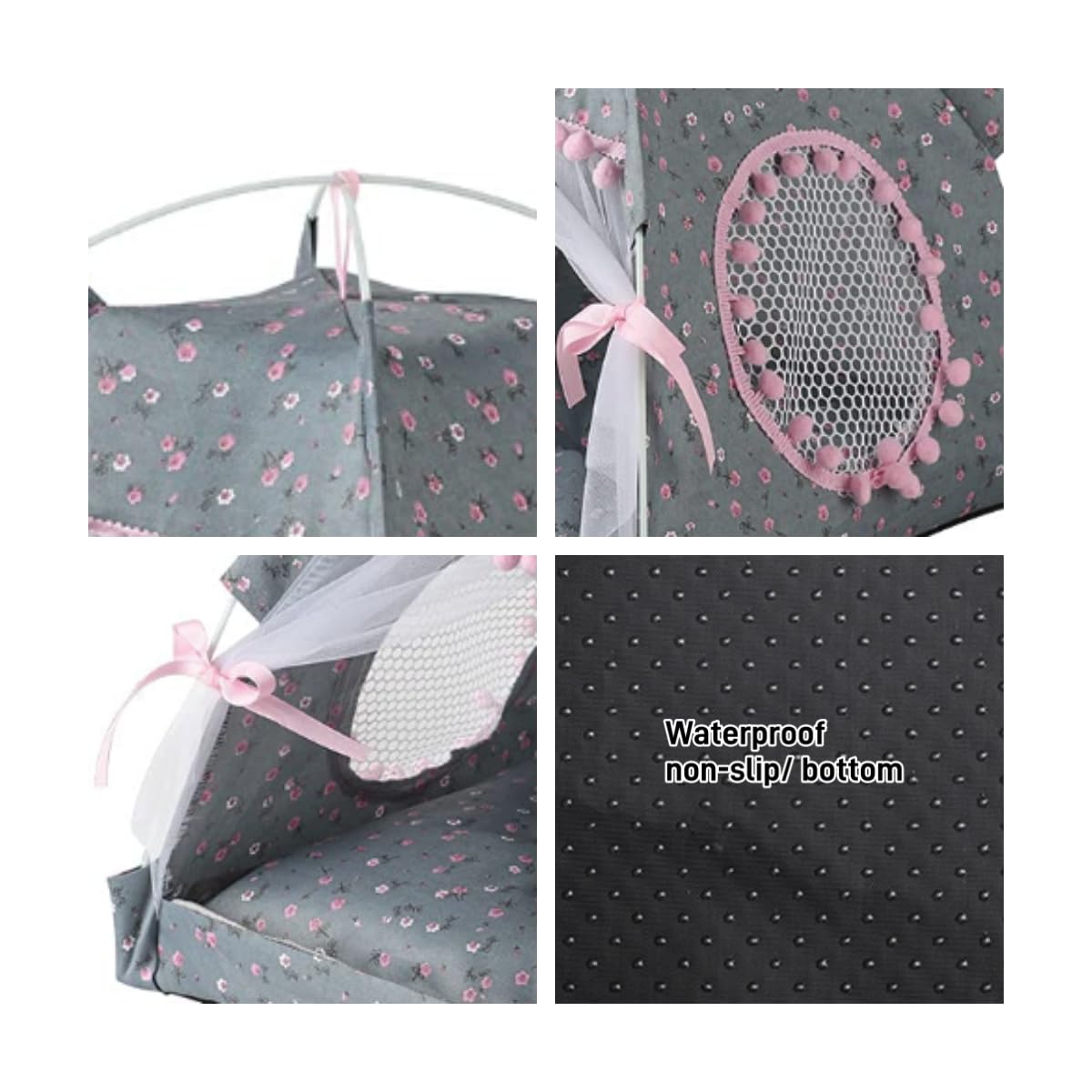 Cat Bed Tents Dog House Indoor Outdoor Lace Mesh Breathable Windows Door Curtains Removable Portable Nest Teepe House (Large,Gra