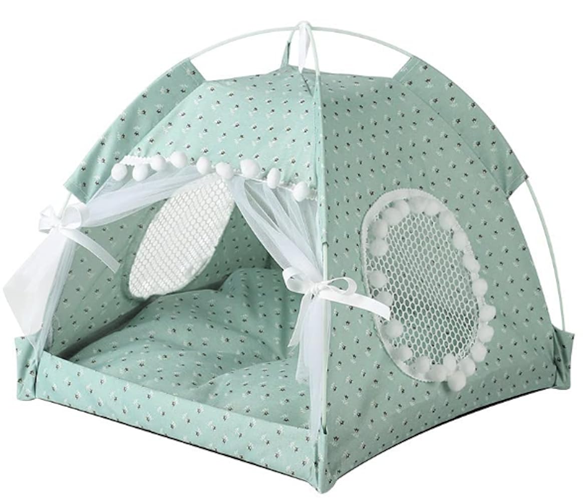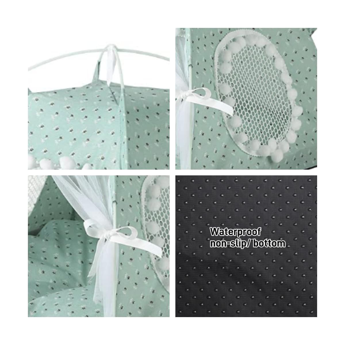 Cat Bed Tents Dog House Indoor Outdoor Lace Mesh Breathable Windows Door Curtains Removable Portable Nest Teepe House (Large,Min