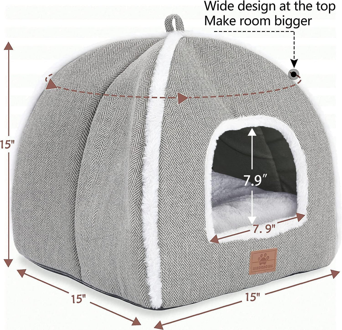 Cat Beds For Indoor Cats, Foldable Cat Bed Cave, Cat House With Washable Cushions, Cat Bed For Kittens, Small Pets, Cat Tent, Soft And Warm Indoor Cat House, Gray…