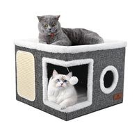 Cat Beds For Indoor Cats, Large Cat Cave Bed With Scratch Pad And Fluffy Ball, Foldable Cat Hideaway, Cat House With Reversible