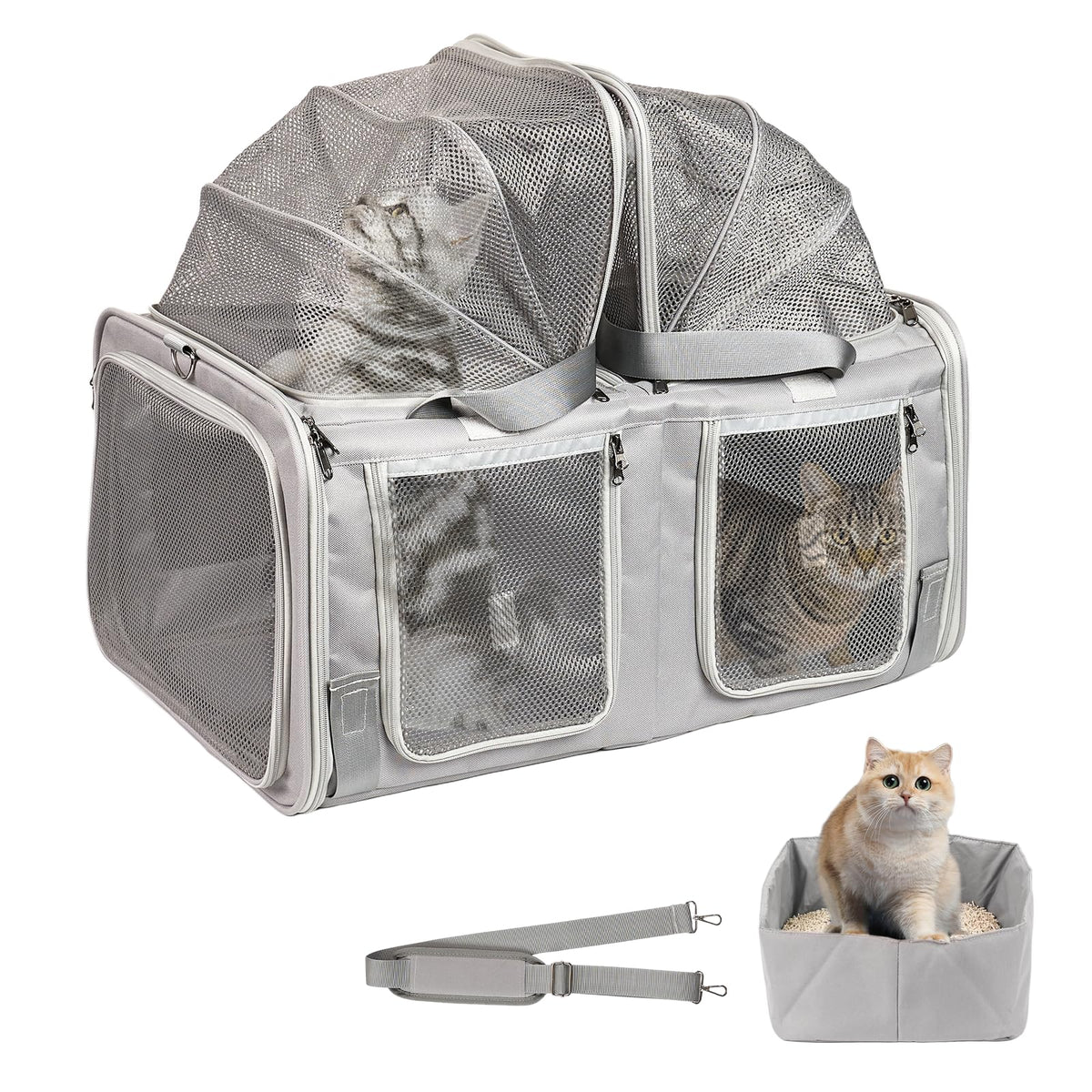 Cat Carrier For 2 Cats With Litter Box, Litail Top Expandable Cat Travel Carrier For Car Travel, With Breathable Mesh, Up To 25L