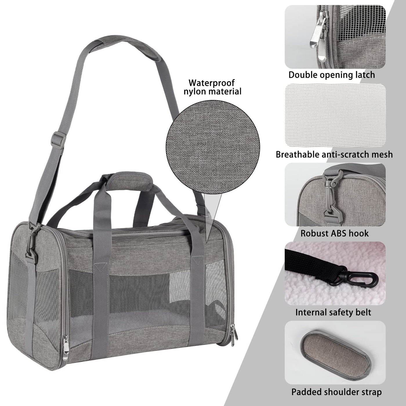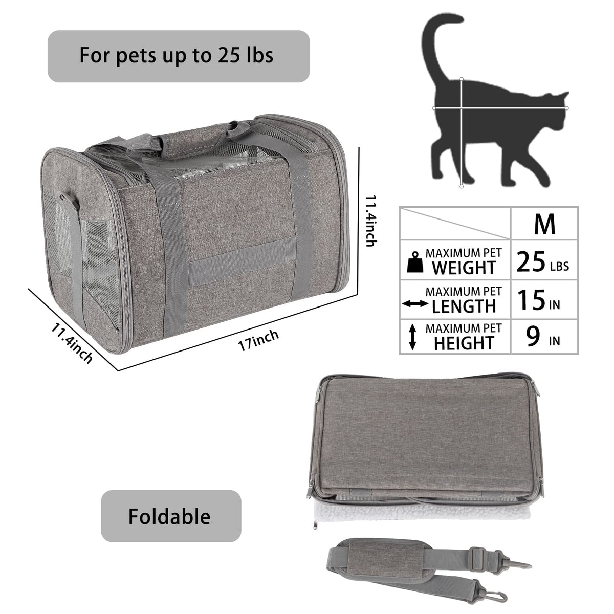 Cat Carrying Case - Pet Carrier Airline Approved, Protable And Breathable Pet Travel Carrier Removable Fleece Pad, Collapsible Cat Carrier Dog Carrier For Medium Cats Small Cats Dogs (17*11*11 Grey)