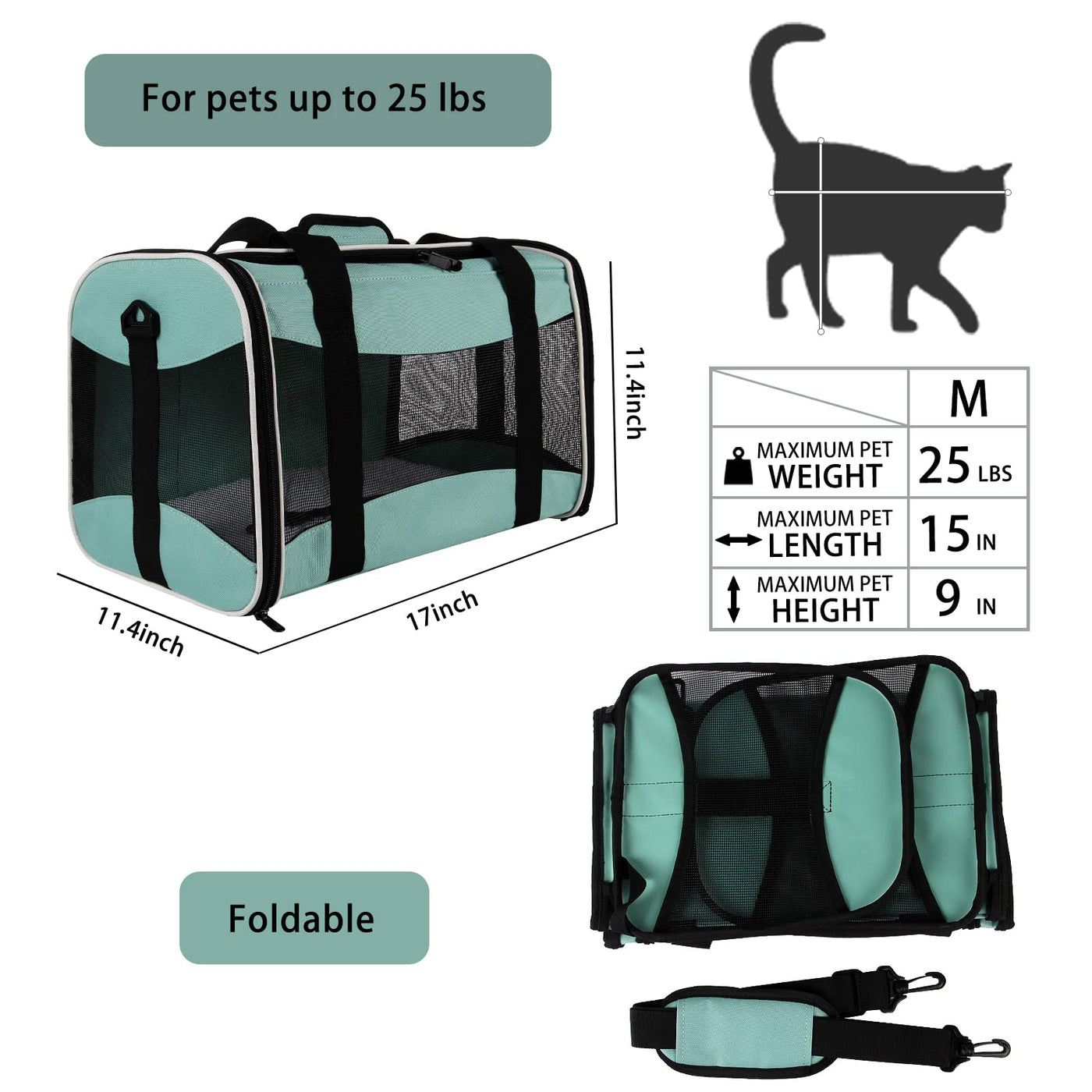 Cat Carrying Case Pet Dog Carrier Soft-Sided Cat Bag Airline Approved, Pet Travel Carrier Up To 15 Lbs, Collapsible Cat Carrier Dog Carrier For Medium Cats Small Cats Dogs(17X11X11 Green)