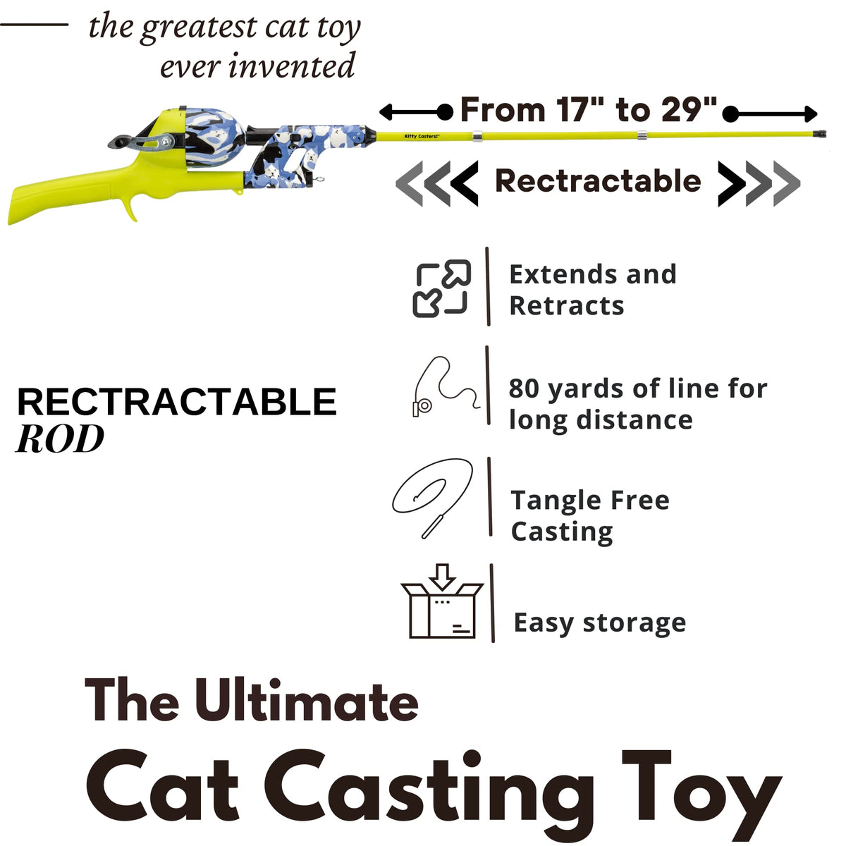 Cat Caster Fishing Pole Toy | Tangle Free & Easy To Store. Includes One Soft Toy And 2 Plastic Fish | The Ultimate Gift For Kitt