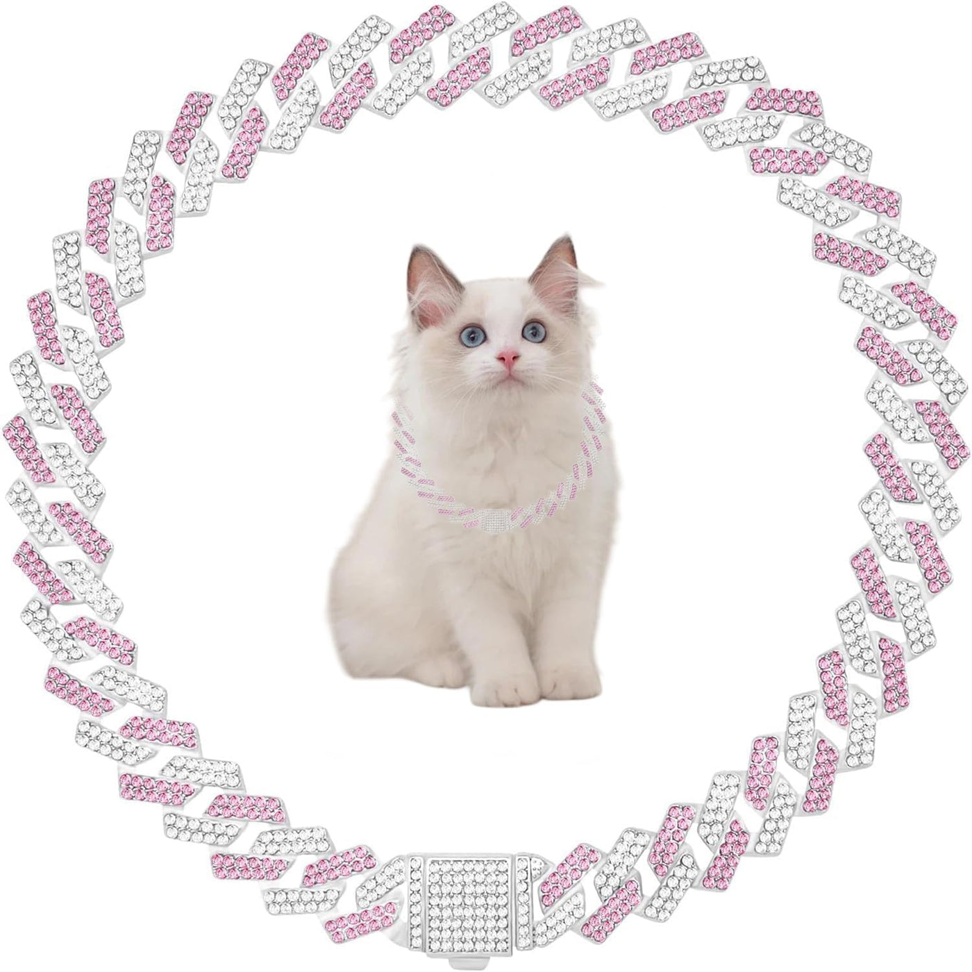 Cat Chain Collar, Diamond Metal Cuban Link Dog Collar,15Mm Wide Bling Sparkly Puppy Necklace For Small Medium Large Pet Dogs Cat