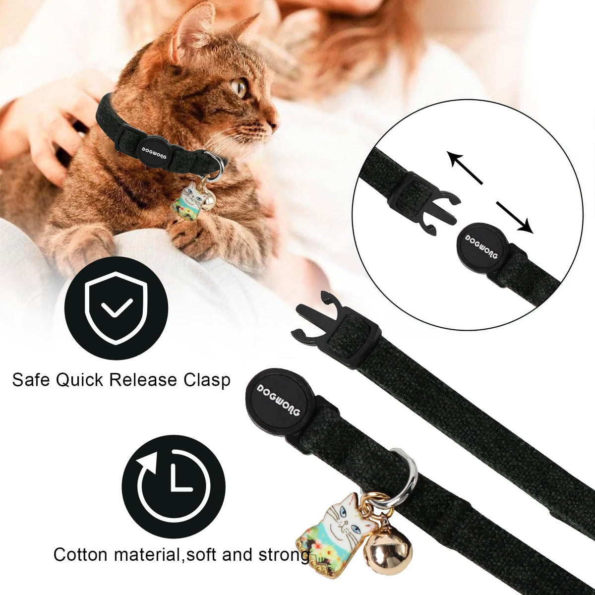 Cat Collar,2 Pack Cat Collars Breakaway With Bell, Dogwong Safety Buckle Black Cat Collar For Girl Boy Cats And Small Dogs,Adjus