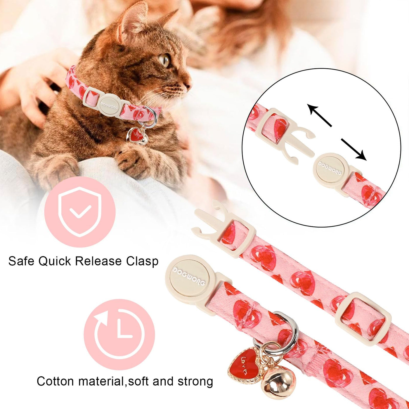 Cat Collar,2 Pack Cat Collars Breakaway With Bell, Dogwong Safety Buckle Valentine'S Day Cat Collar Pink Heart For Girl Boy Cats