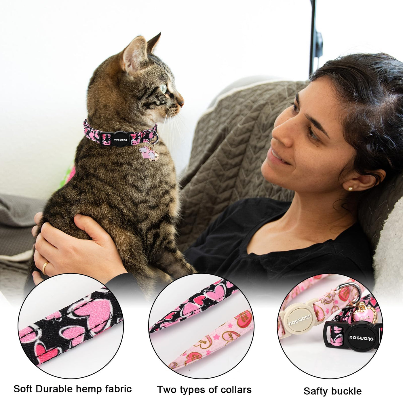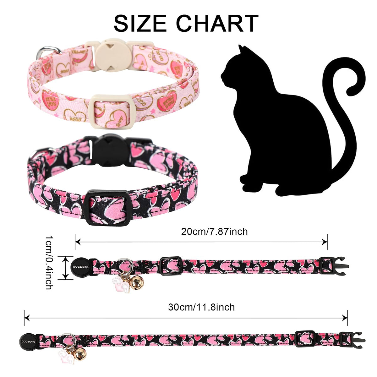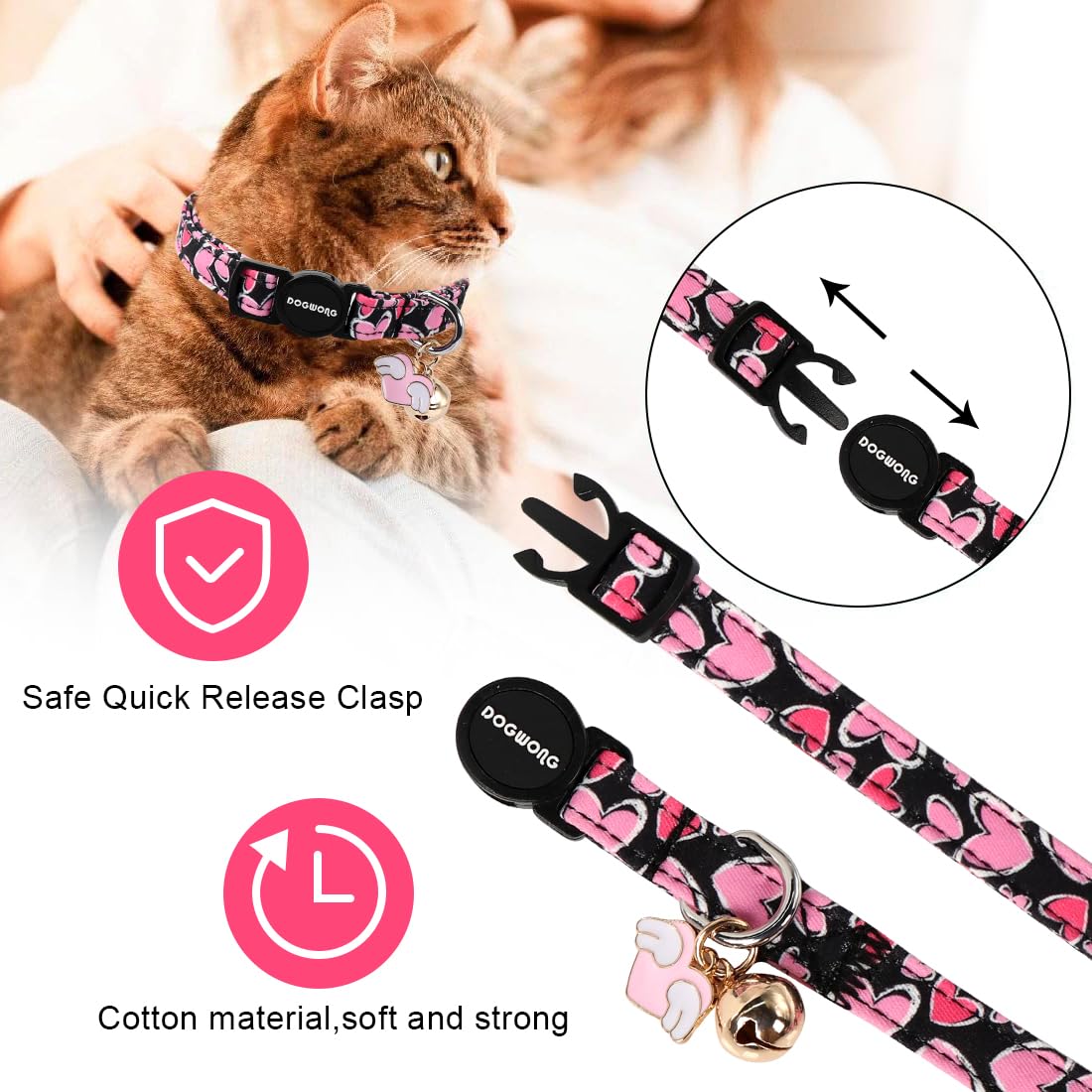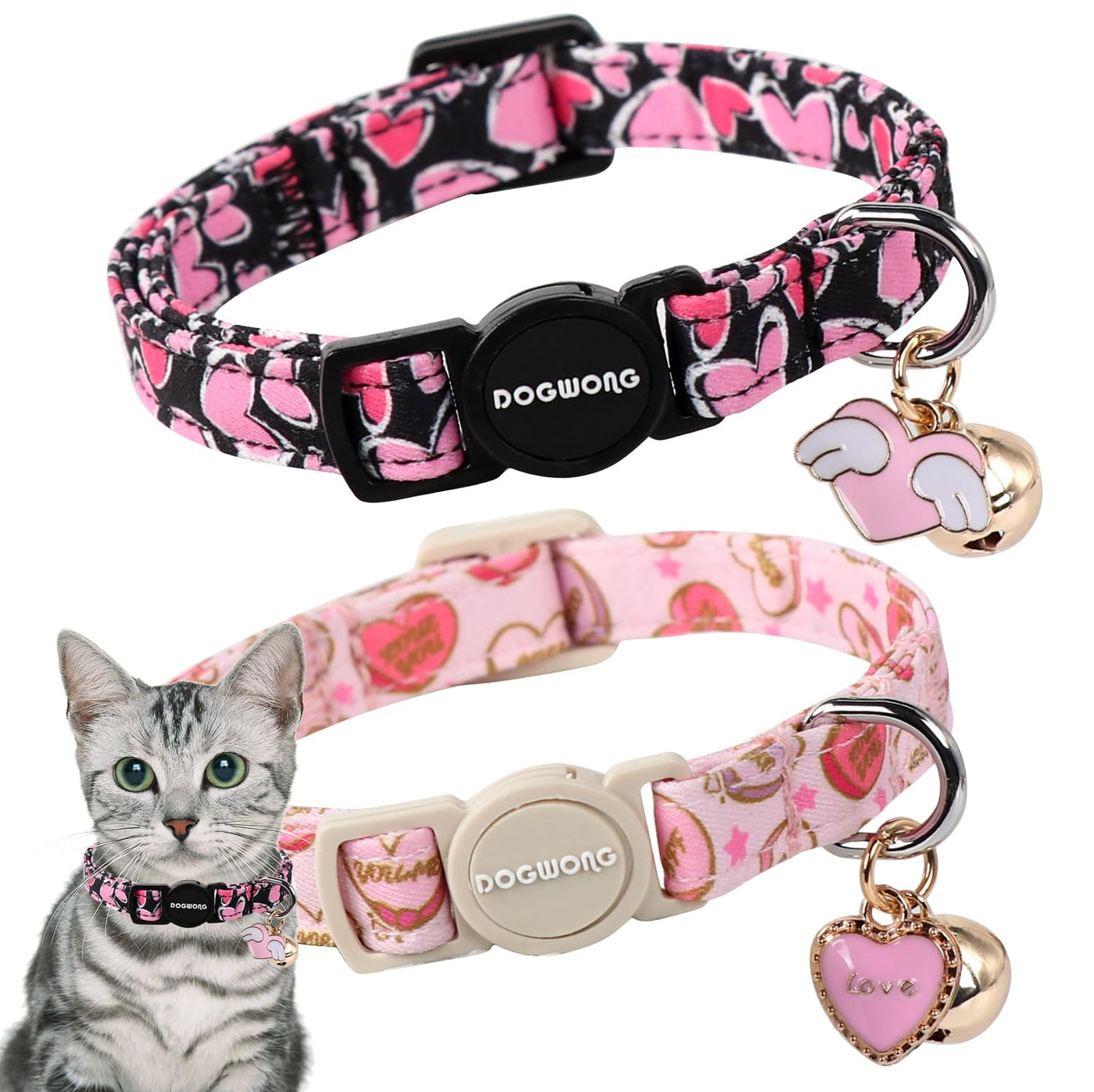 Cat Collar,2 Pack Cat Collars Breakaway With Bell, Dogwong Safety Buckle Valentine'S Day Cat Collar Pink Red Heart For Girl Boy