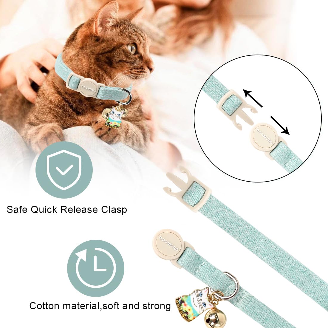 Cat Collar,2 Pack Green Cat Collars Breakaway With Bell