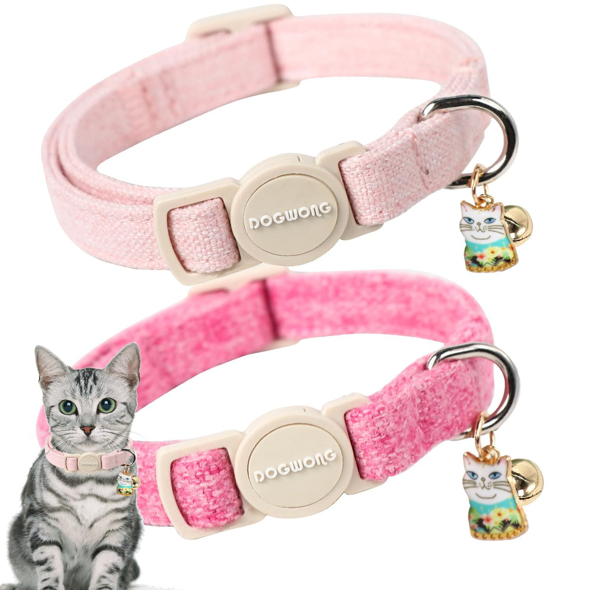 Cat Collar,2 Pack Pink Cat Collars Breakaway With Bell, Dogwong Safety Buckle Cat Collar For Girl Boy Cats And Small Dogs,Adjust
