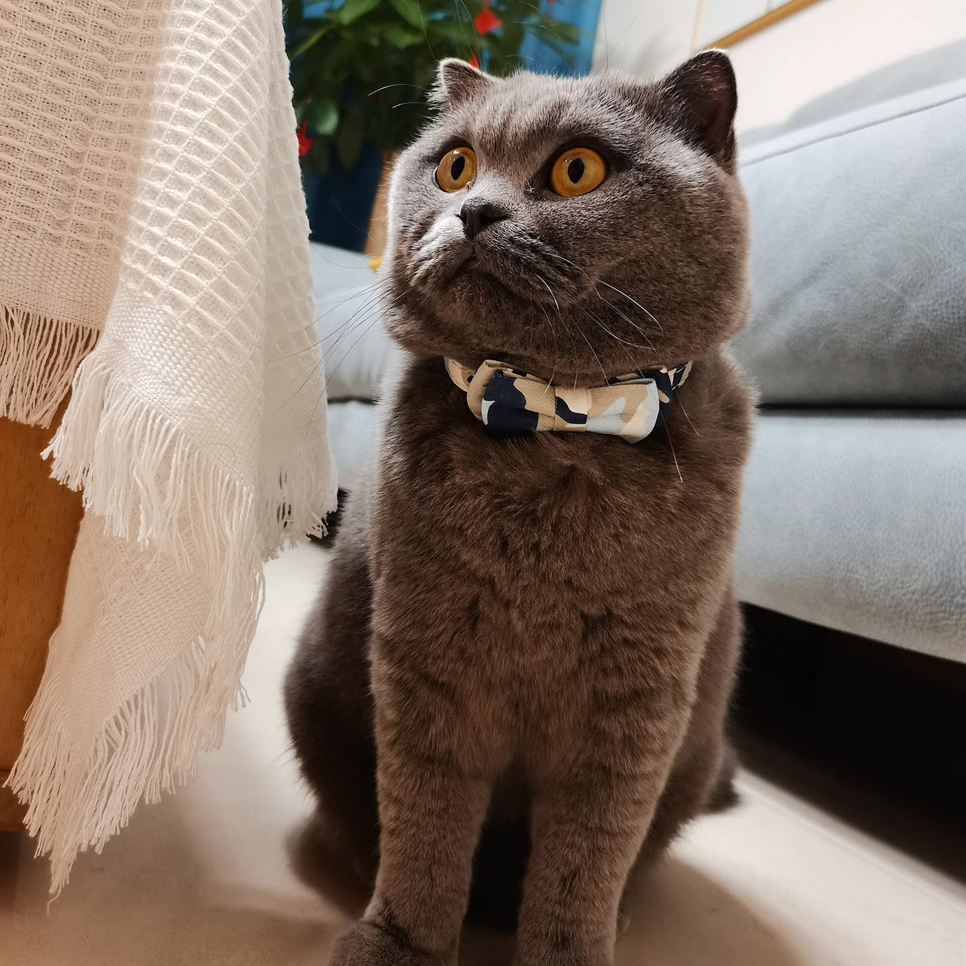Cat Collar Breakaway With Bell And Bow Tie, Plaid Design Adjustable Safety Kitty Kitten Collars(6.8-10.8In)(Camo 3)