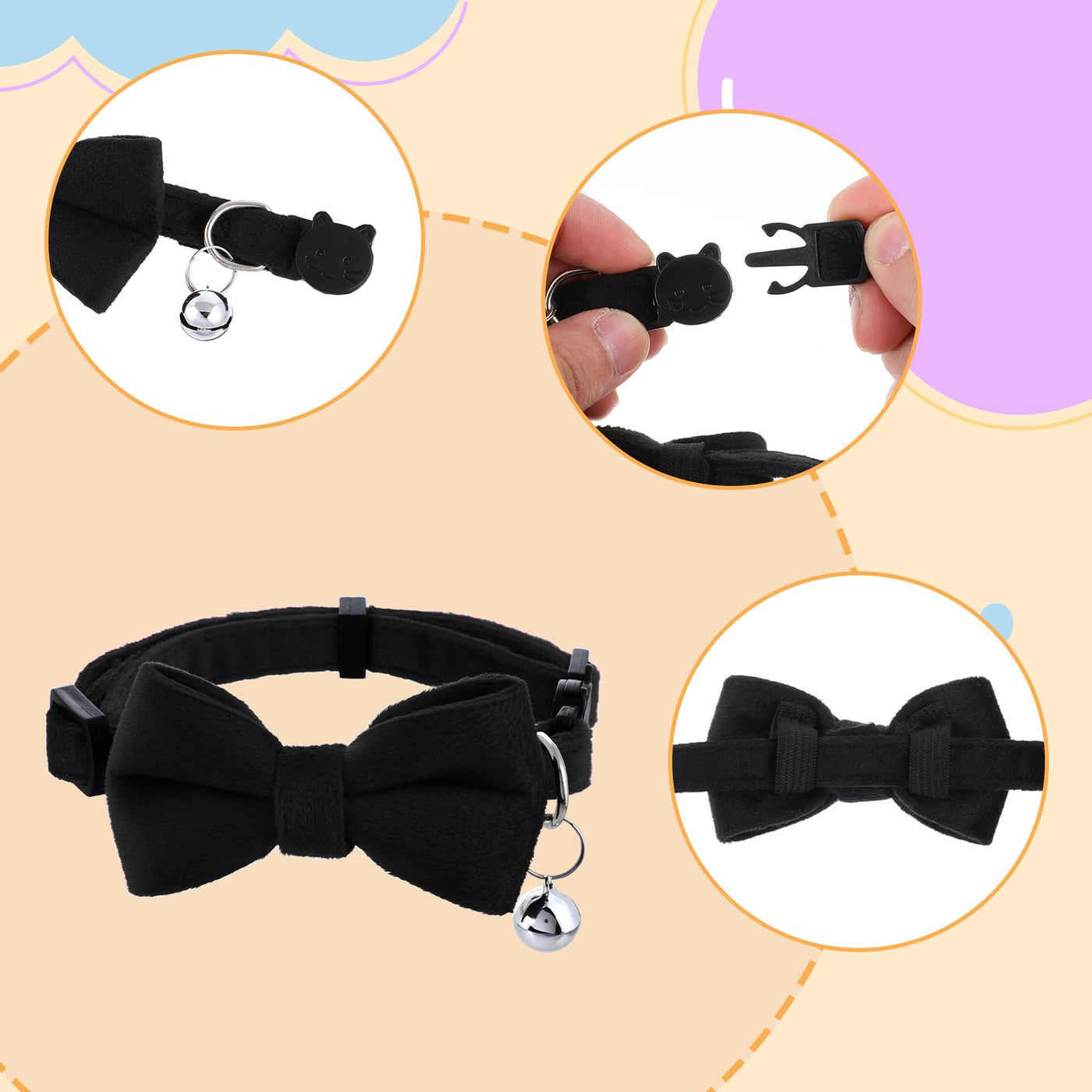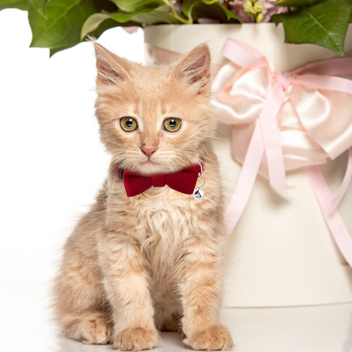 Cat Collars Breakaway With Cute Bow Bell Cat Collars Kitten Small Puppy Safety Bow Tie Basic Color Velvet Kitten Collar Gentleme