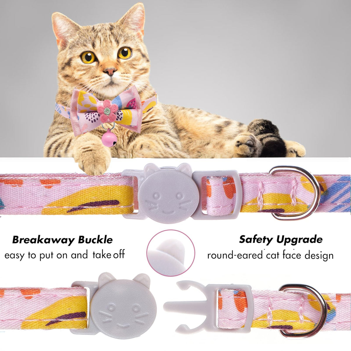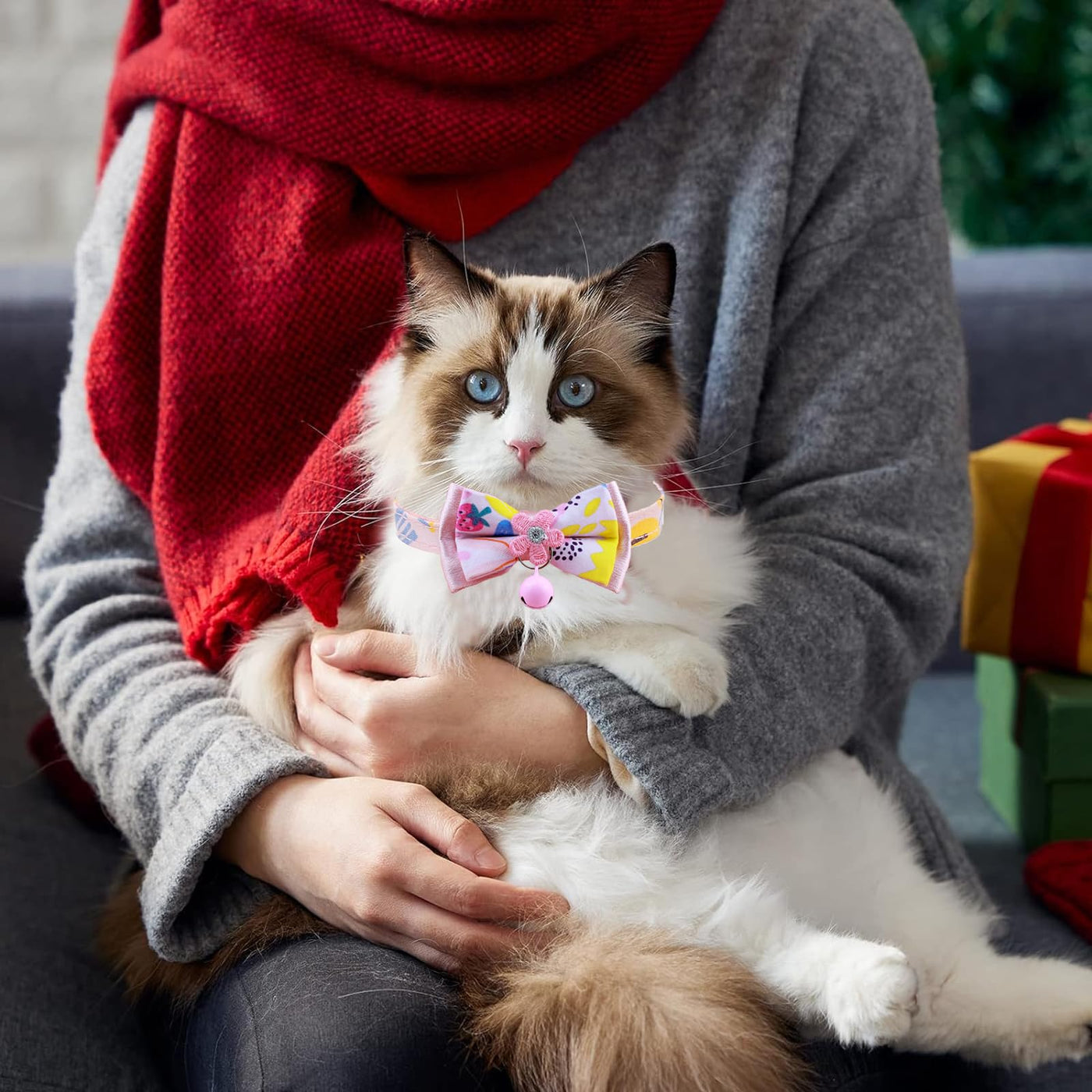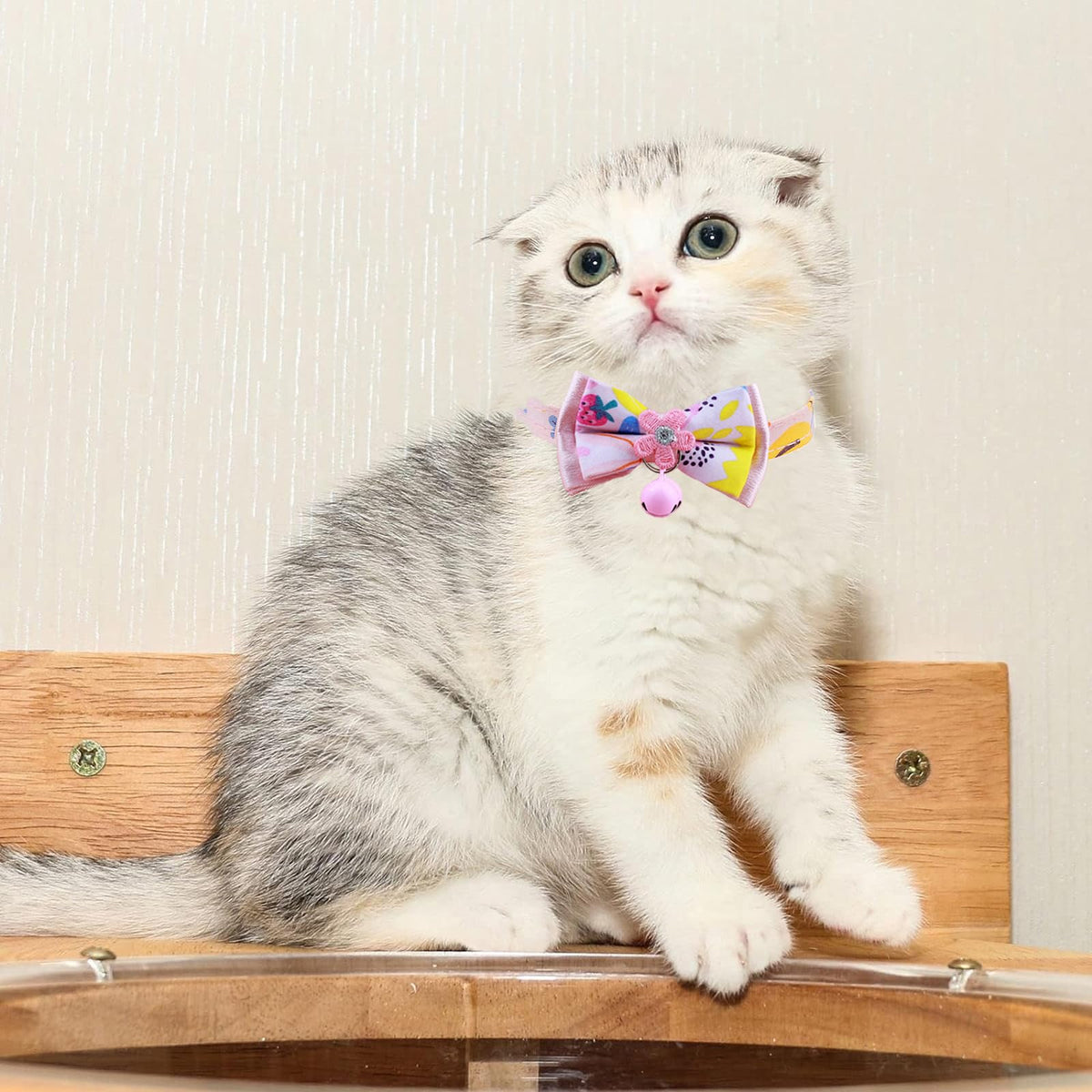 Cat Collars,Hyqhyx Floral Bow Collar With Bell, Removable Cat Collar With Tie, Cute Cat Collar For Cats And Puppies