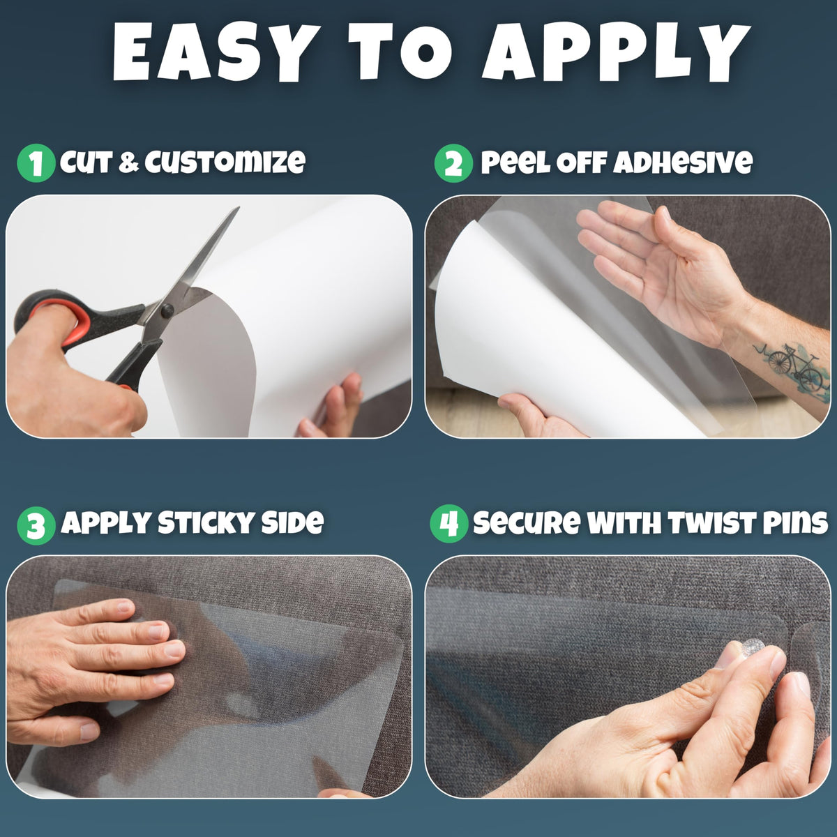 Q: How do I install the Cat Couch Protector?A: Installing the Cat Couch Protector is very easy. Simply peel off the self-adhesive pad, position it where you want to protect your furniture, and stick it down. For added security, you can use the included twist pins to secure the protector in place.