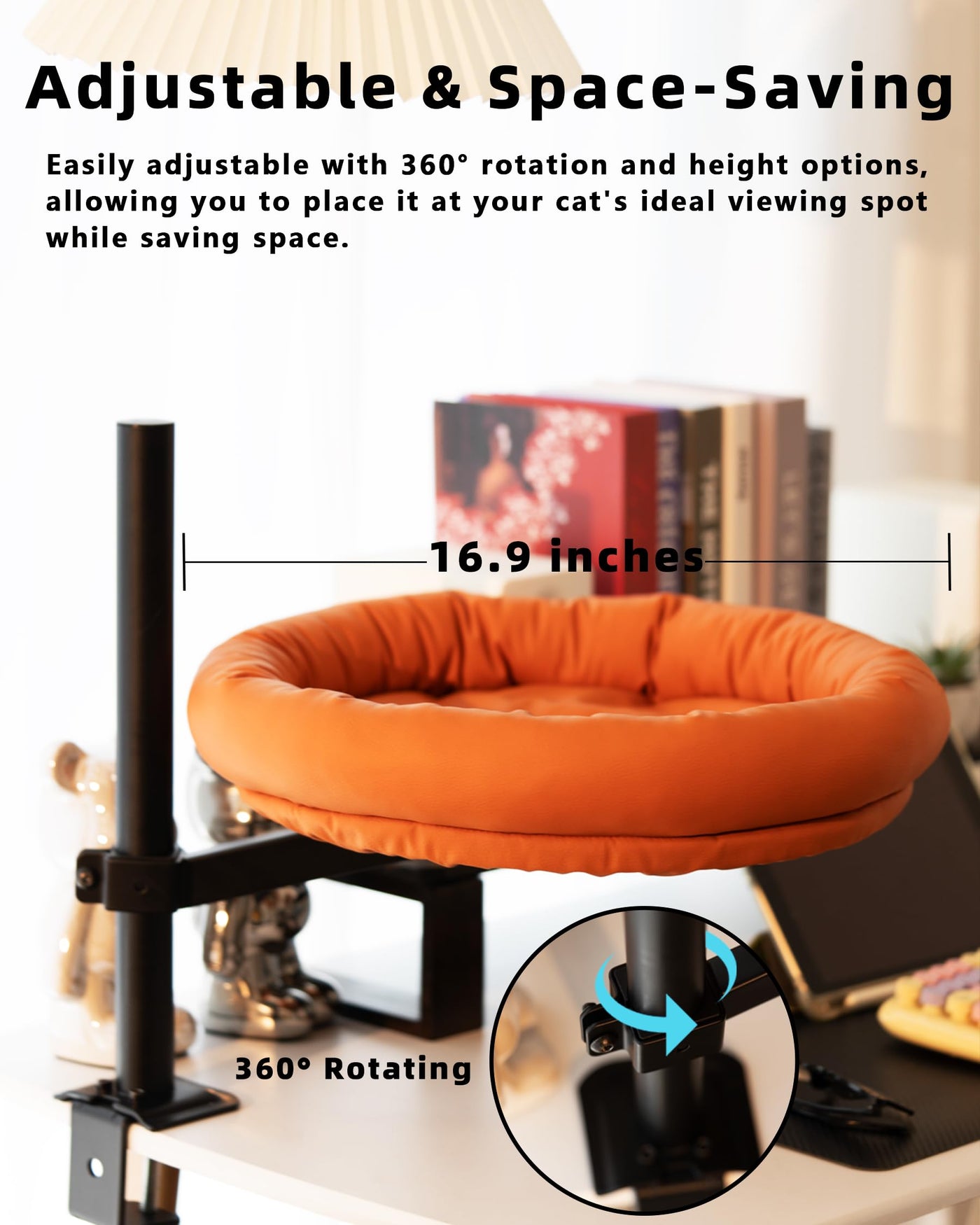 Cat Desk Bed, 360 Adjustable Cat Desk Perch With Leather Cover, Desk Nest Cat Bed, Supports Up To 50 Lbs, Scratch-Resistant, Wat